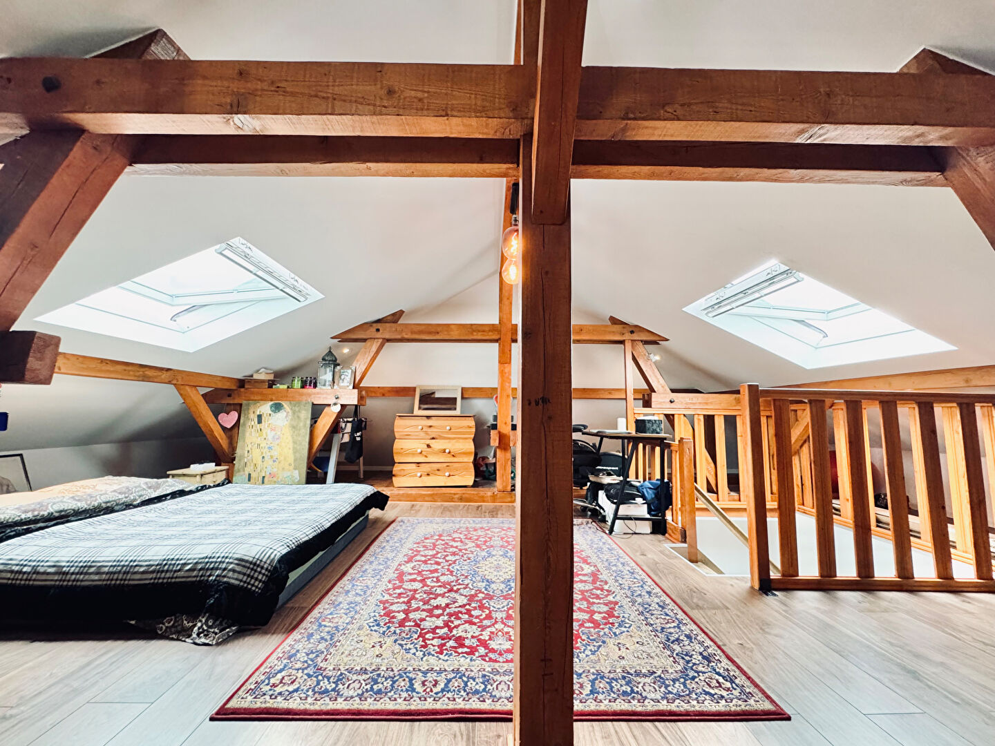 Une suite parentale particulièrement cosy se situe sur toute la partie supérieure du duplex proposant ainsi un impressionnant volume accueillant espaces dressing, un coin bureau, un espace détente et une élégante salle de bains moderne avec WC. Velux avec volets occultants, isolants et motorisés.