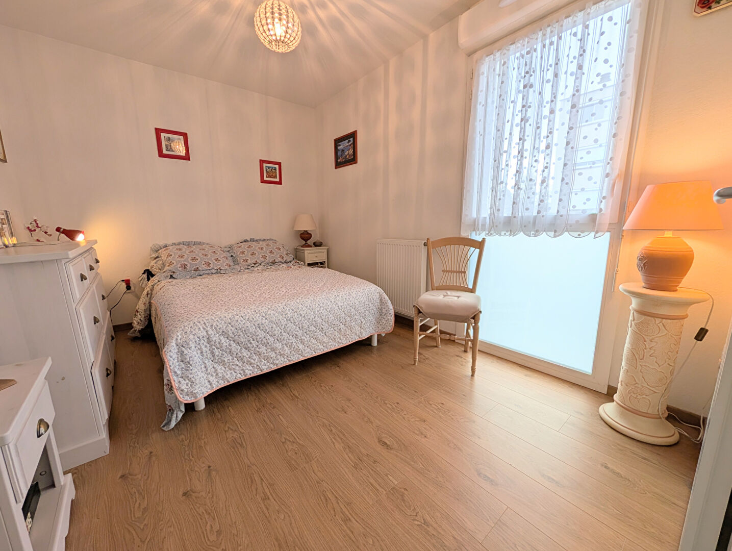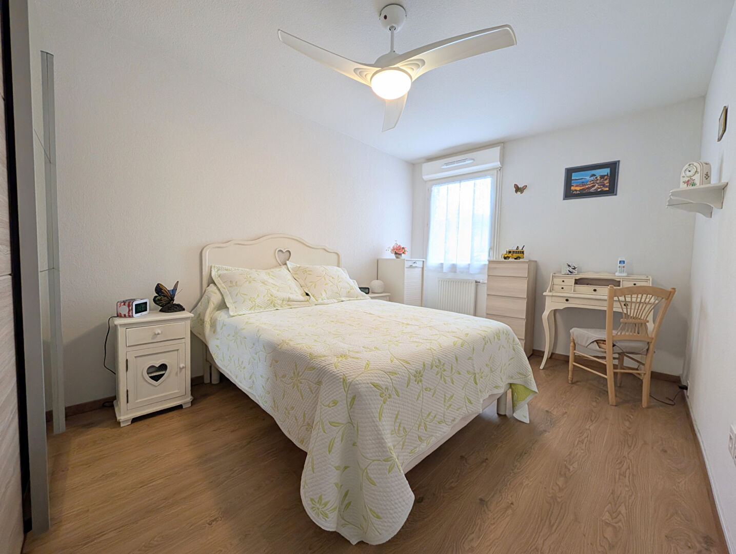 L'espace nuit offre deux belles chambres, dont une avec dressing, une salle d'eau fonctionnelle et des WC séparés.