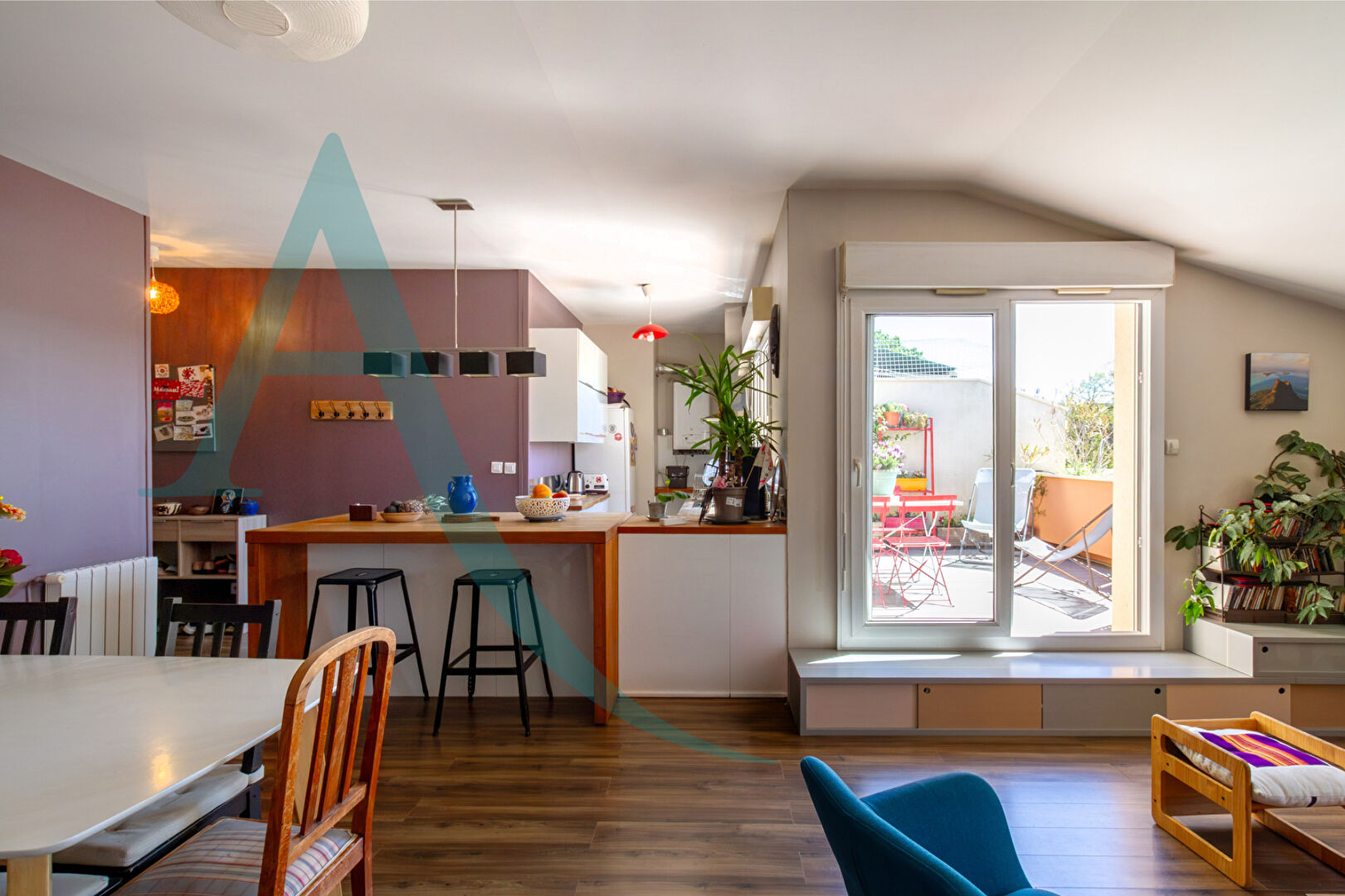 Les atouts factuels : surface généreuse de 93 m², distribution en 5 pièces adaptée à une vie familiale ou à du télétravail, dernier étage synonyme de luminosité et d'une vue dégagée, terrasse privative pour profiter des beaux jours, et confort thermique assuré par la climatisation.