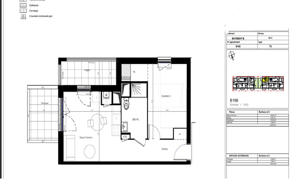 A VENDRE type T2 neuf de 42.90m² situé au 1er étage dans cette nouvelle résidence contemporaine comprenant une entrée de 6.81m², un séjour cuisine de 16.82 m² ouvert sur une terrasse et une loggia de plus de 12 m², une chambre de 13,94m² et une salle d'eau WC de 5.34 m²