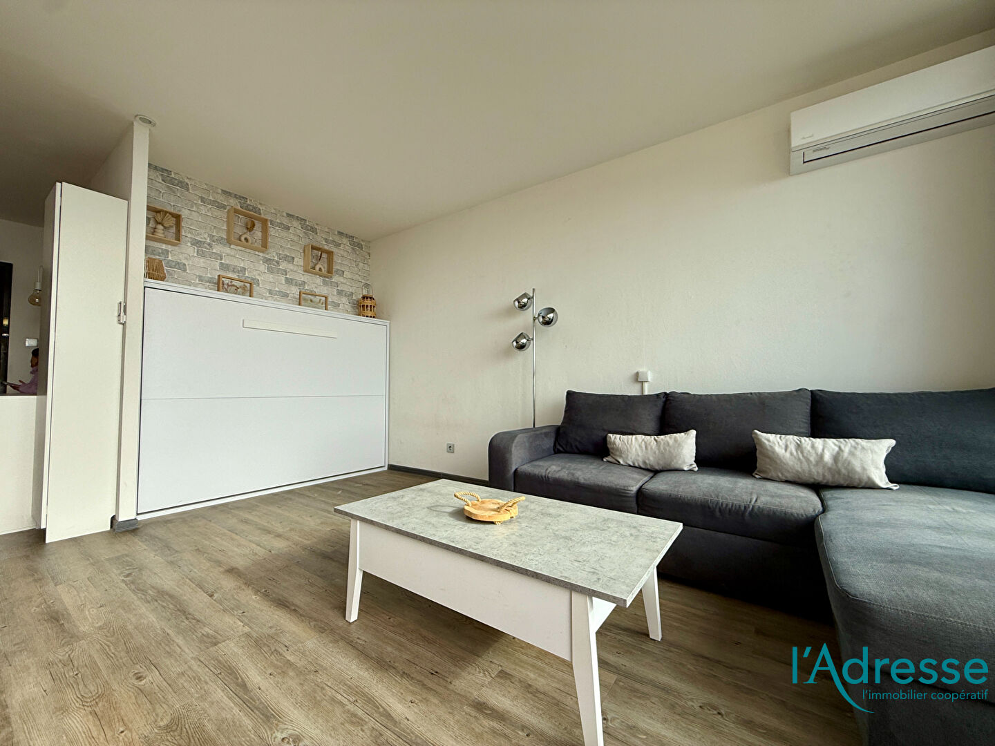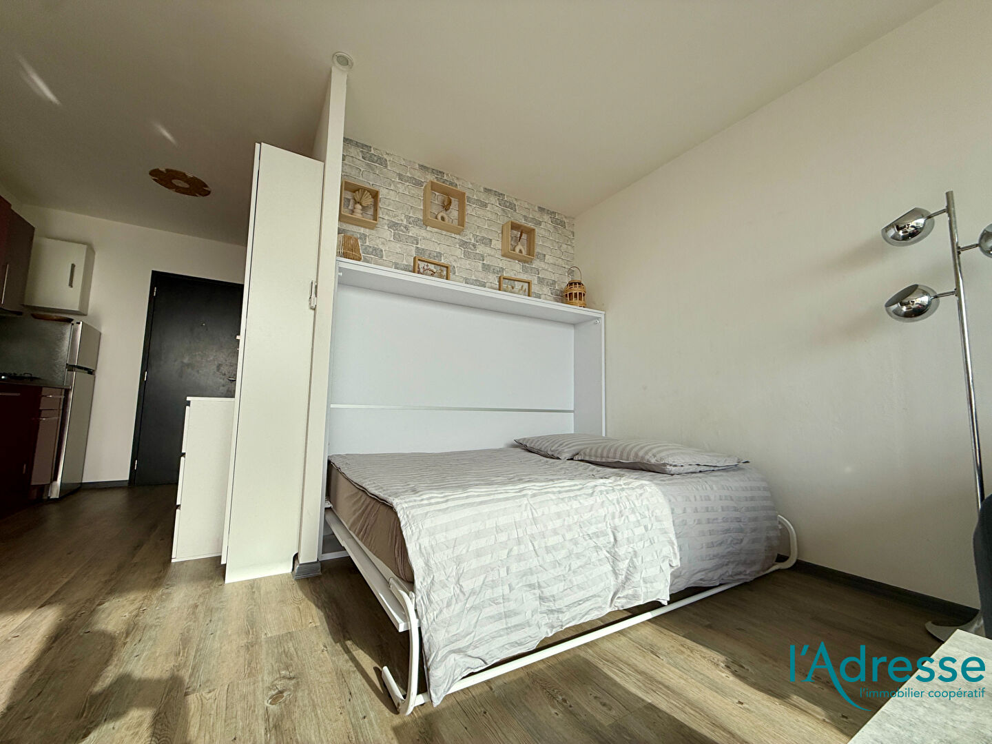 L'appartement se compose d'une entrée desservant une pièce de vie lumineuse comprenant un espace salon-séjour avec cuisine équipée, ainsi qu'une salle d'eau moderne.