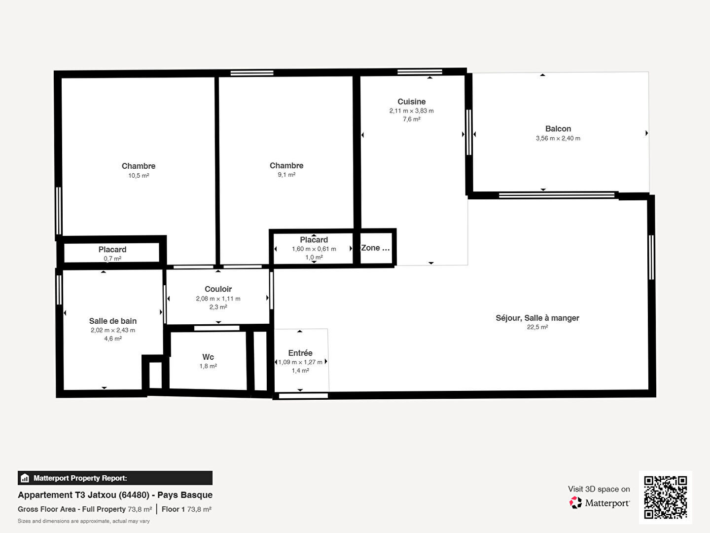 - Vente appartement 3 pièces, 63.40m², Ustaritz