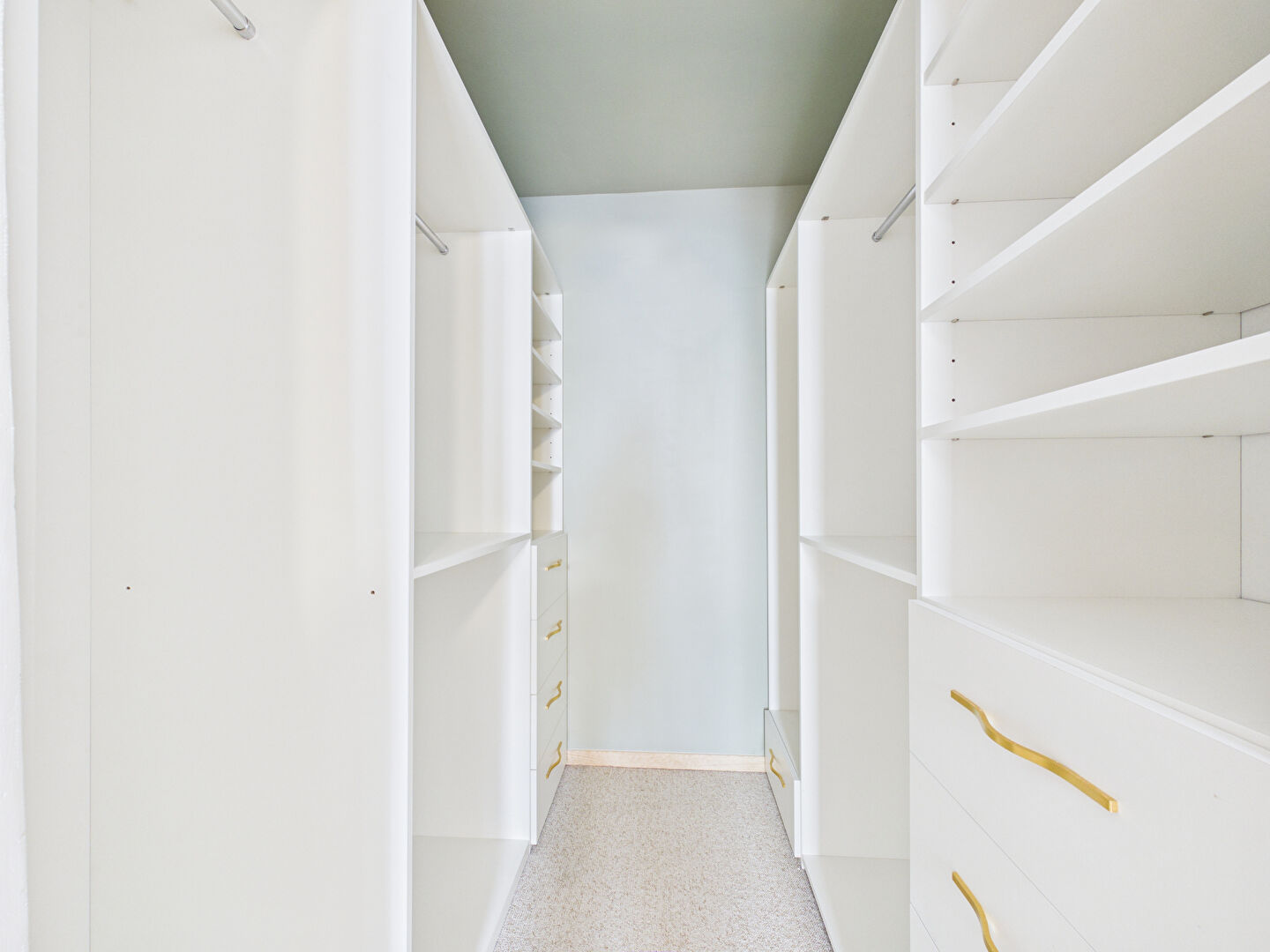 L'espace nuit comprend deux chambres, dont une avec dressing, une salle d'eau moderne avec douche et double vasque, ainsi qu'un WC indépendant.