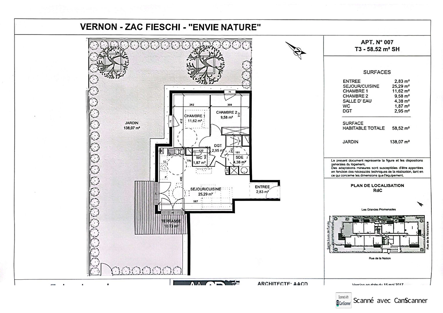 Appartement de 2019 au RDC à Vernon 3 pièces 58.5 m2 avec 3 chambres et parkings + jardin de 138 m²