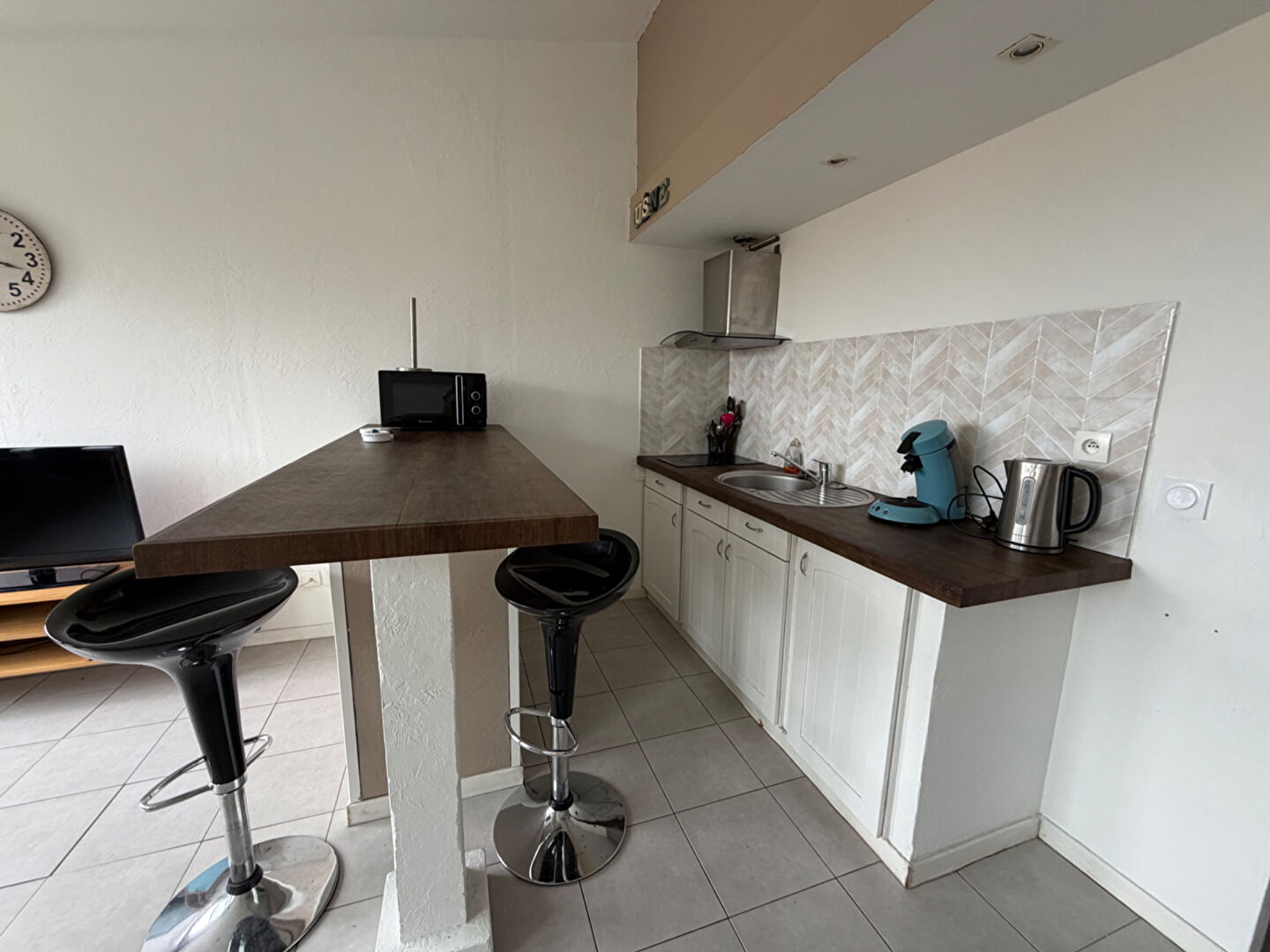 L'appartement se compose d'une entrée, d'un séjour avec cuisine ouverte entièrement équipée, offrant un espace de vie convivial.