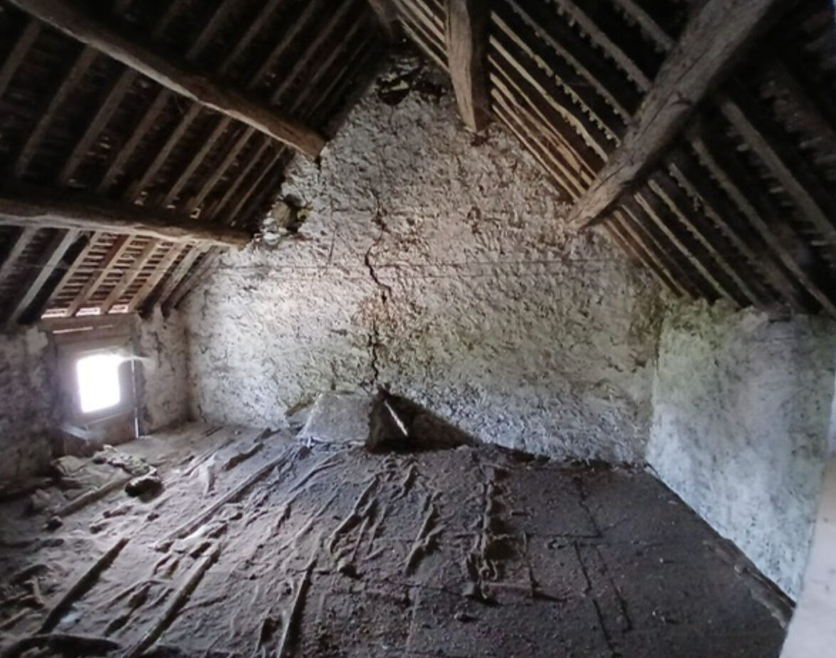 Elle se compose de deux vastes chambres de 26 m² chacune, d'un grenier aménageable, de deux caves et d'une grange de 50 m² pouvant être transformée.