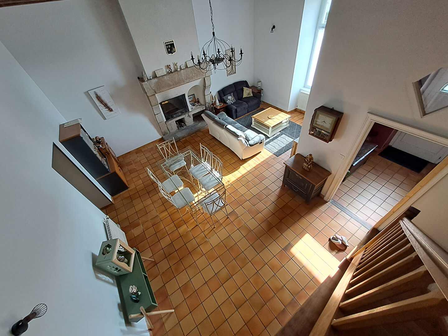 Venez découvrir cet ensemble immobilier unique composé: d'un hall d'entrée, un vaste salon/séjour avec cheminée intégrée d'un insert, une cuisine aménagée et équipée, un second salon/séjour avec poêle à bois, une arrière cuisine, une seconde cuisine aménagée et équipée, deux wc. Très belle hauteur sous plafond.