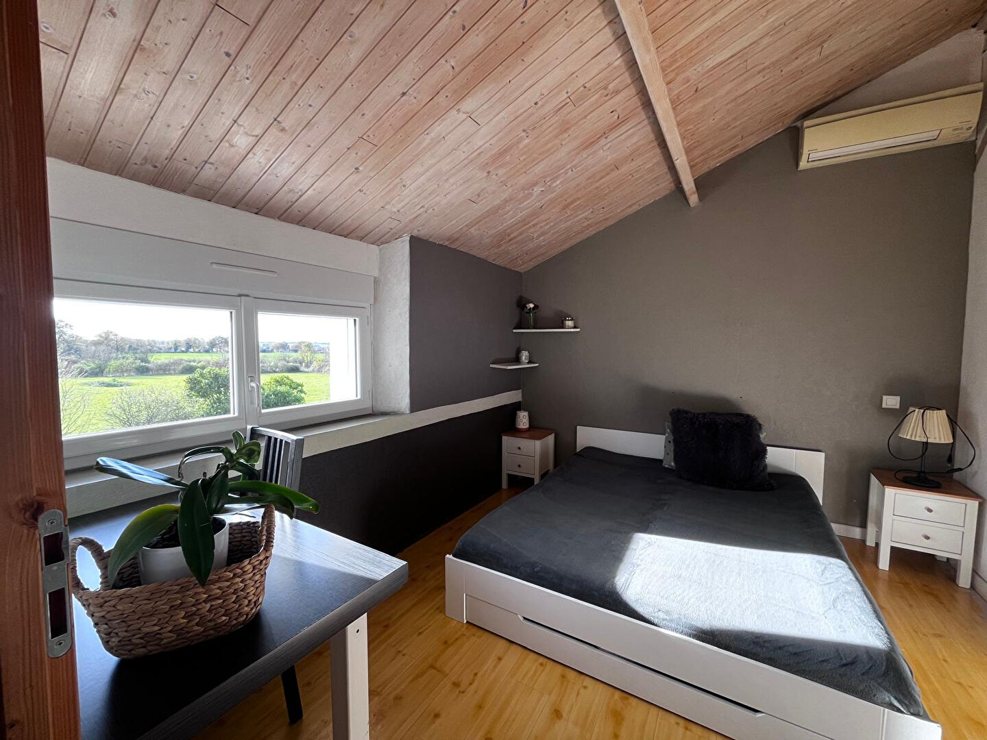 À l'étage, une grande mezzanine dessert trois chambres et une salle d'eau avec WC.