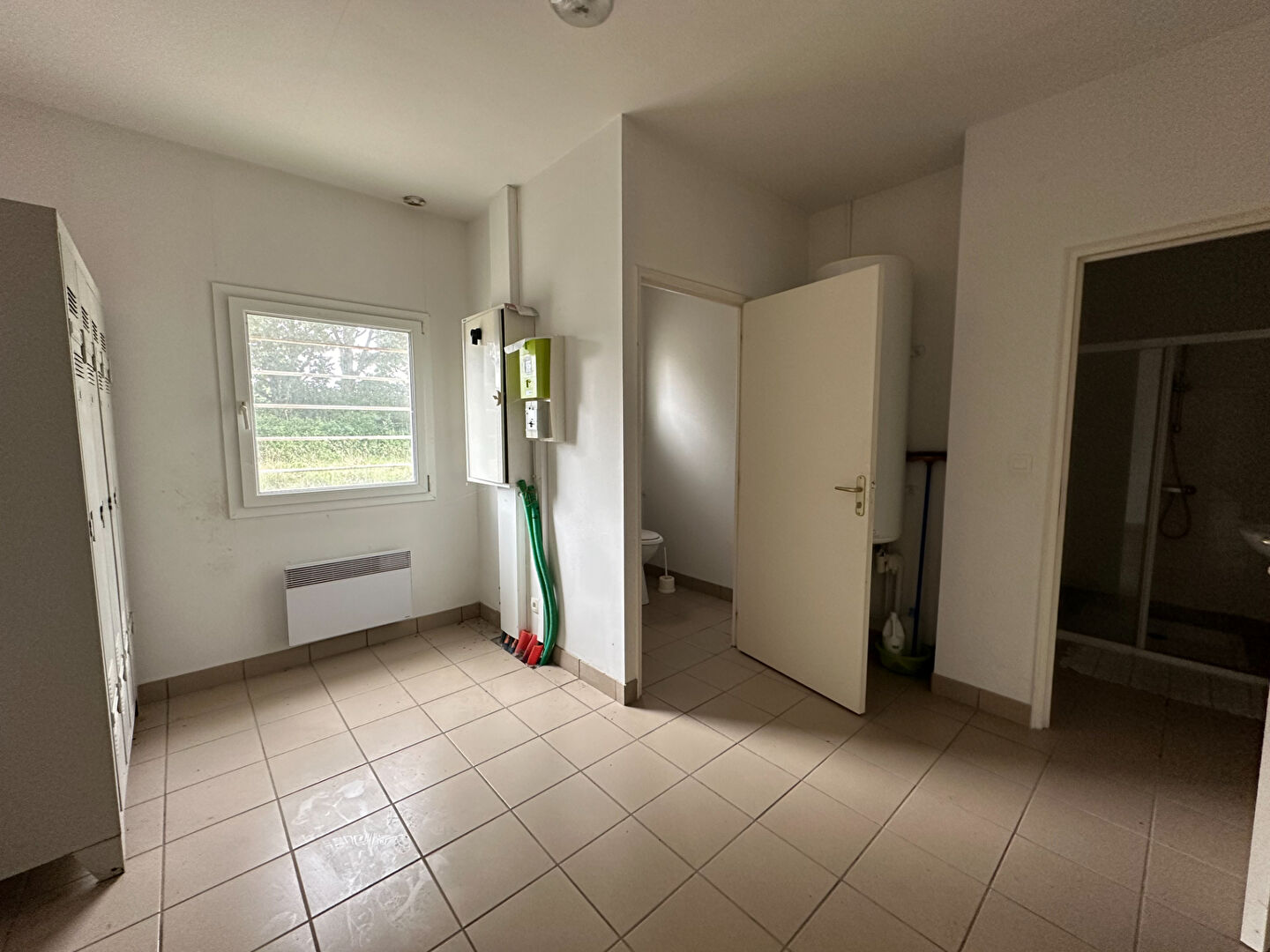 Le bâtiment comprend un vaste espace principal de 400 m², accessible par trois grandes portes sectionnelles. Ces portes permettent une entrée facile des véhicules et des équipements de grande taille, ce qui est idéal pour les activités nécessitant un espace ouvert et dégagé.
