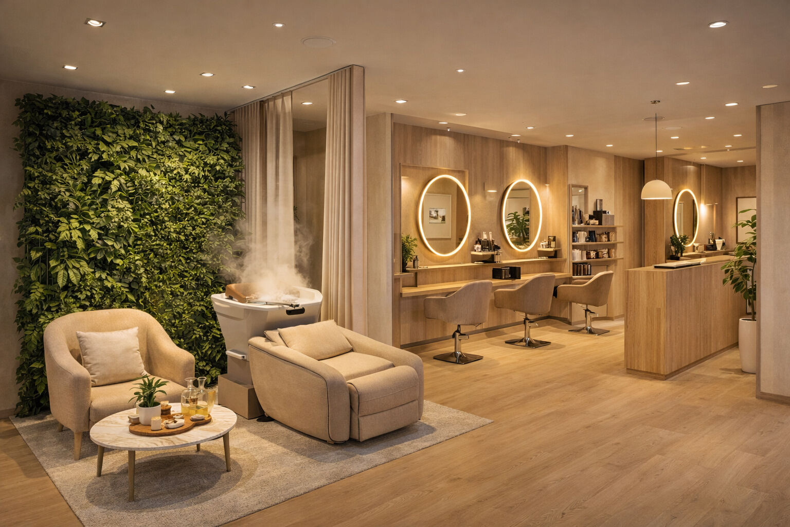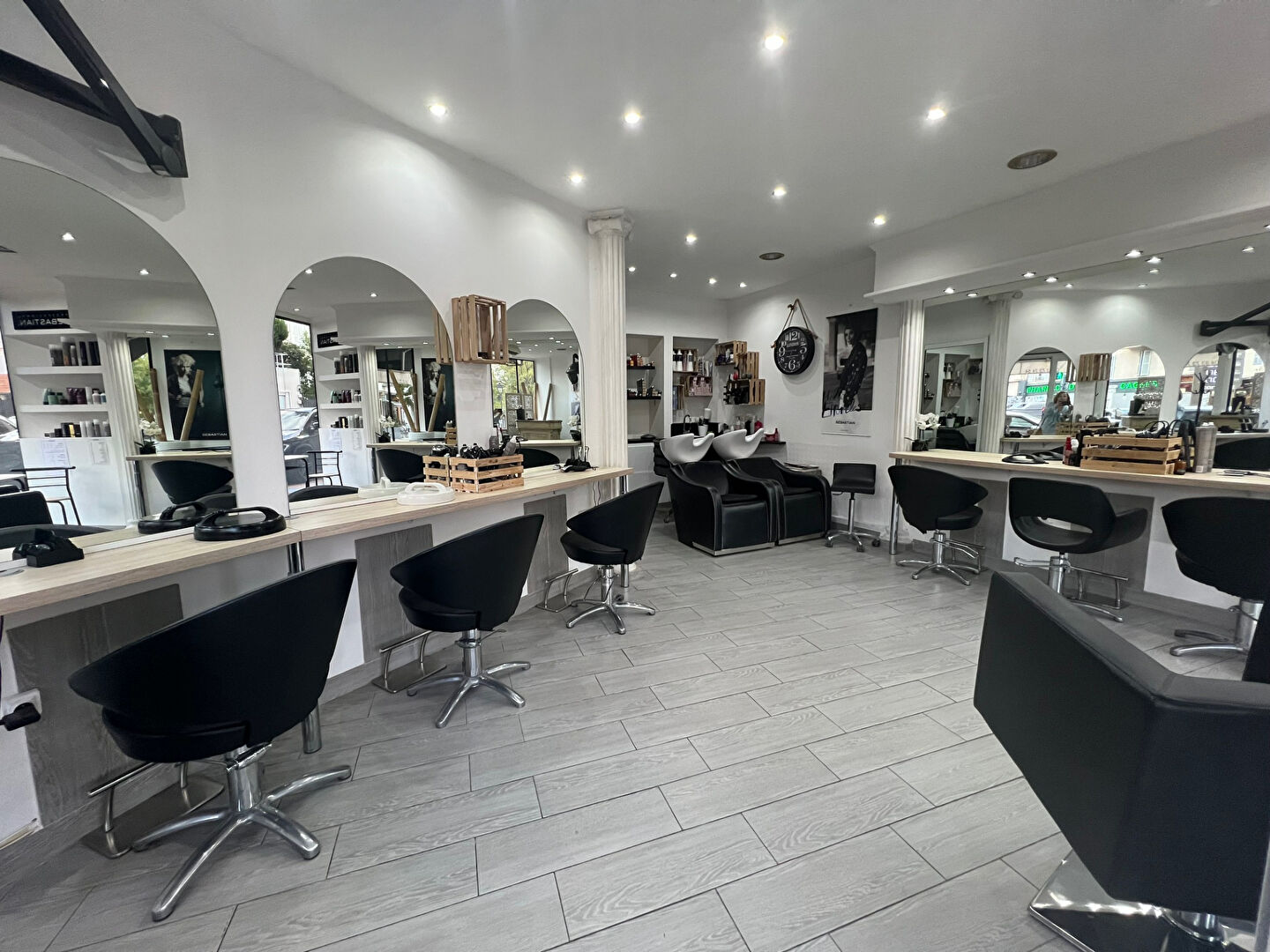 Caractéristiques du bien : 6 postes de coiffage + 2 bacs
