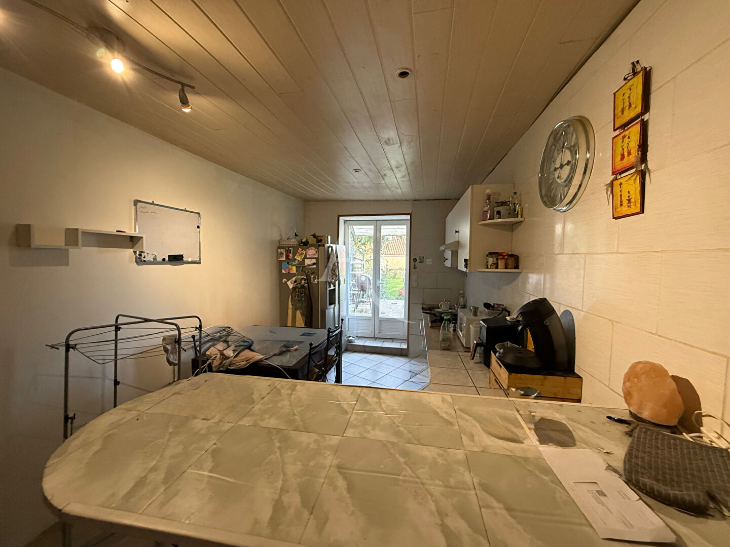 2 ème étage un T2 sous combles à rénover, chambre, un bureau, une salle d' eau, une cuisine avec salon, WC loué 430 euros.