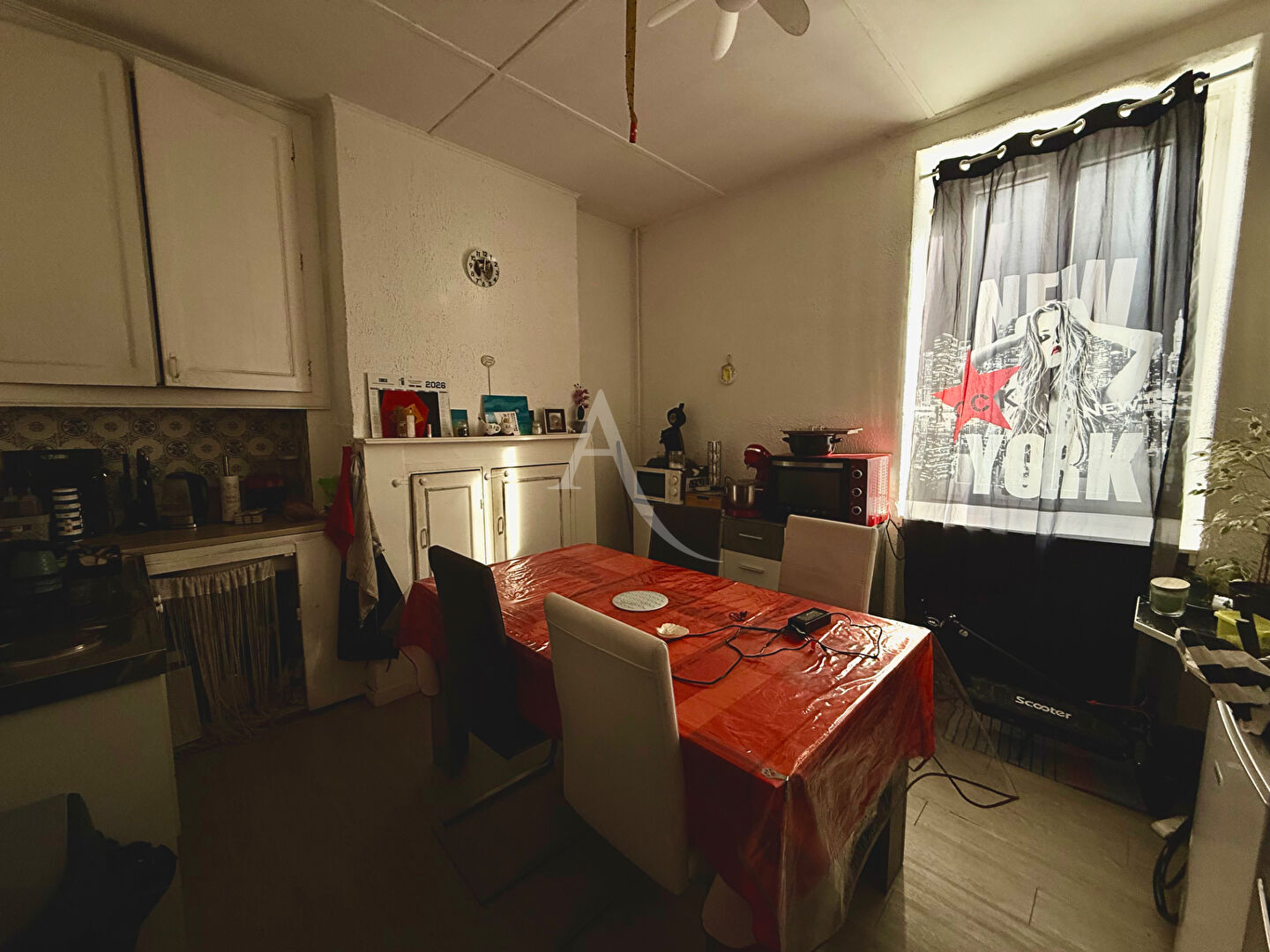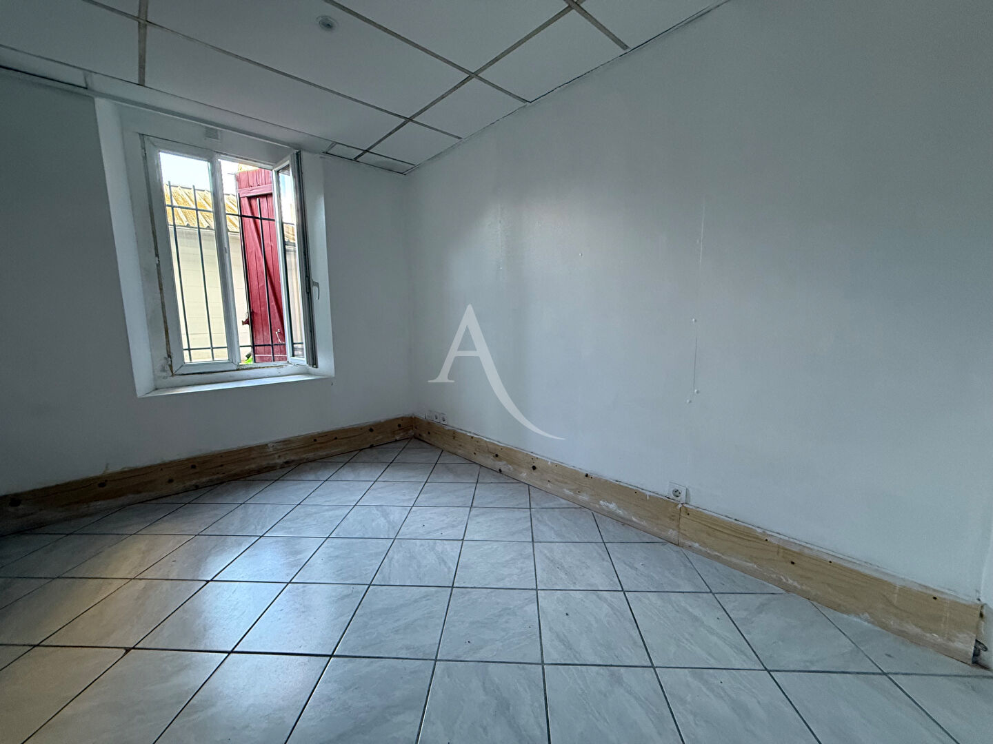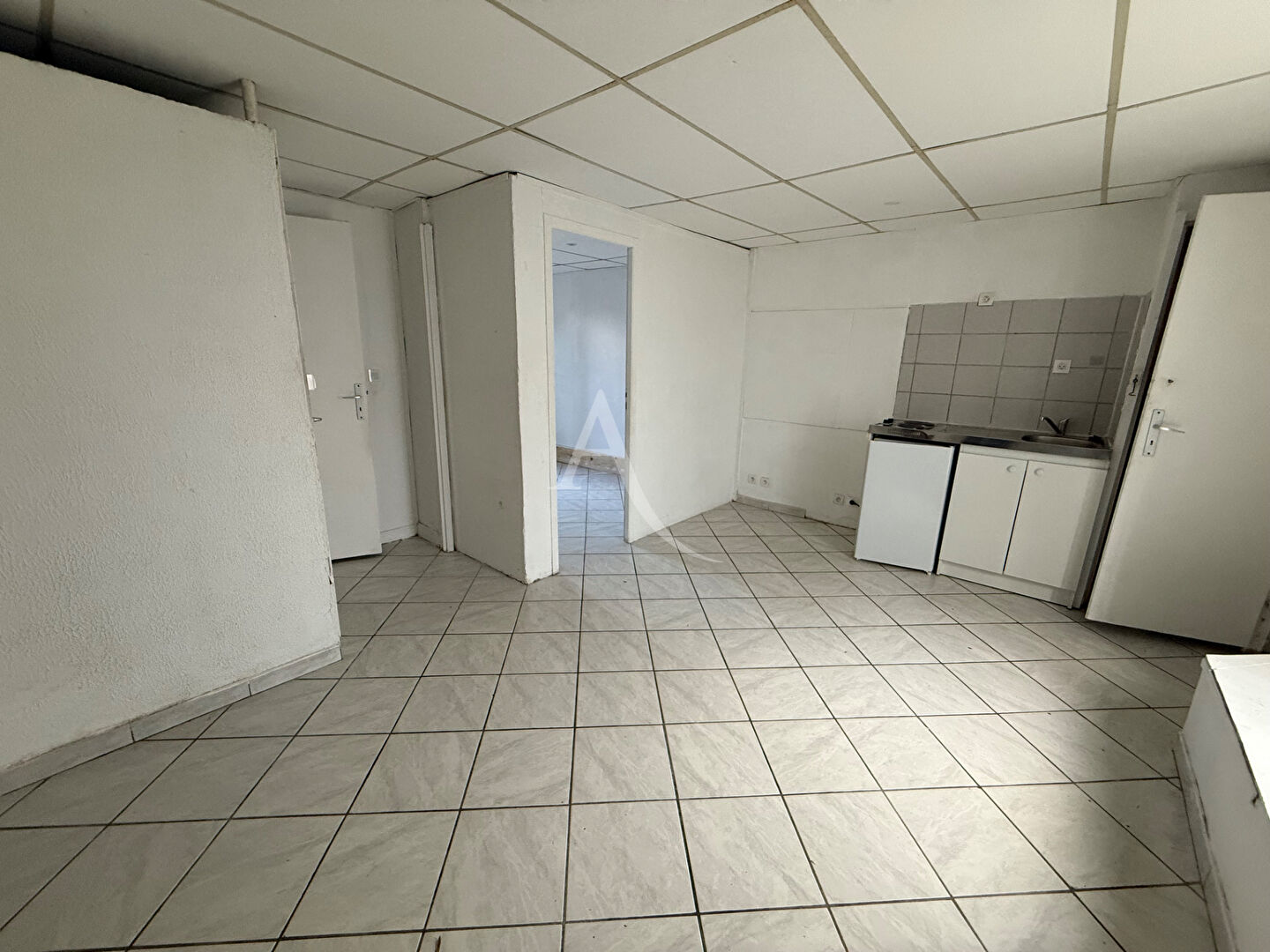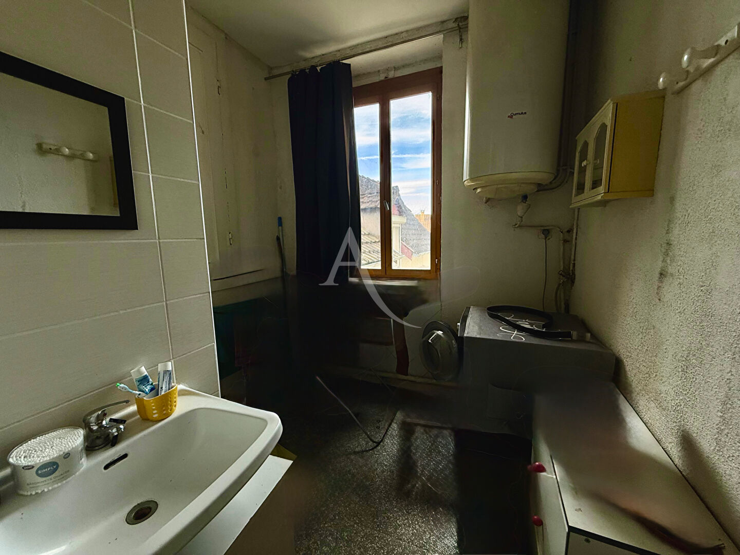 1 er étage T2 à rénover, il dispose de 2 chambres, un bureau, une salle d' eau, une cuisine indépendante, 1 salon, WC loué 424 euros.