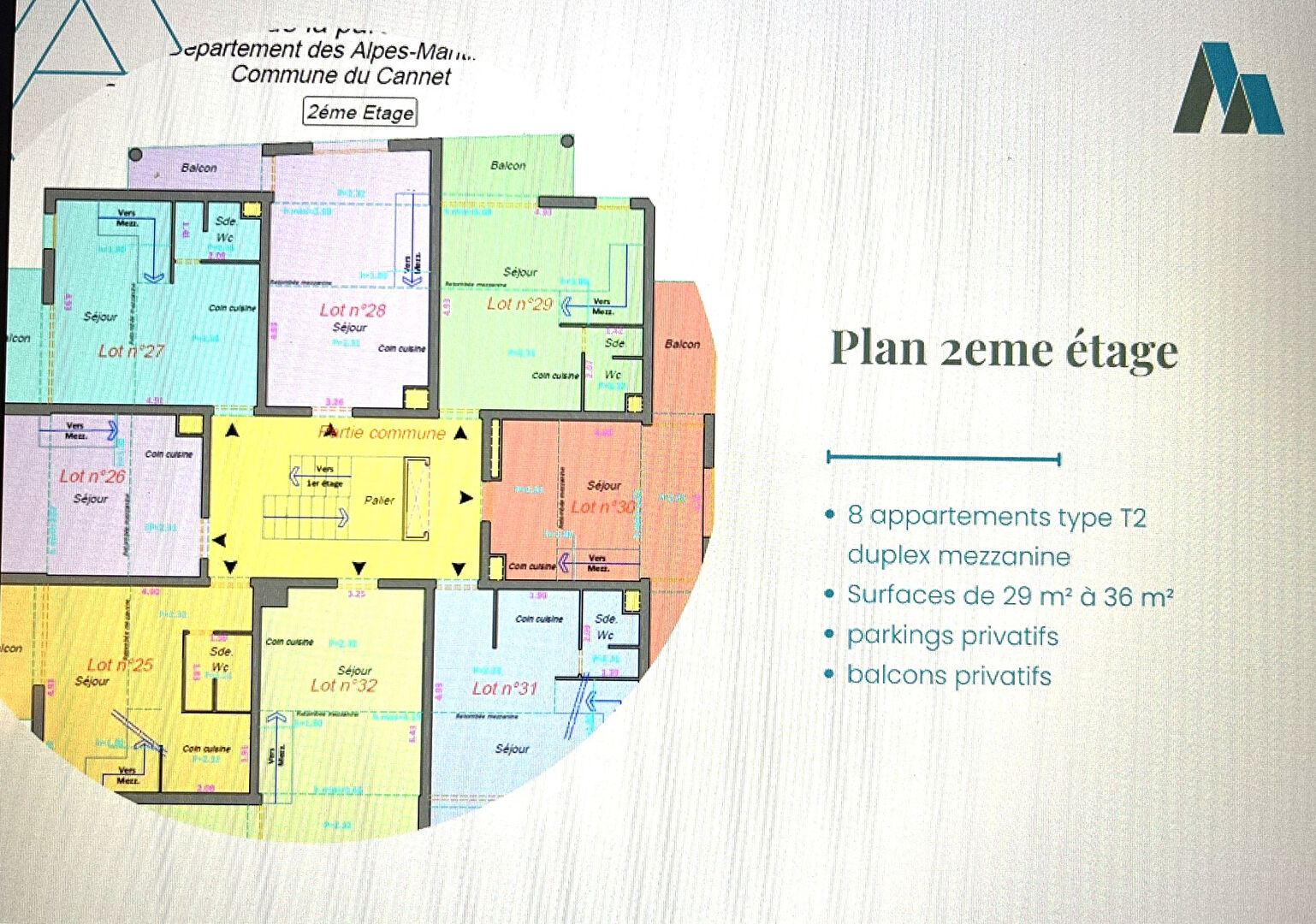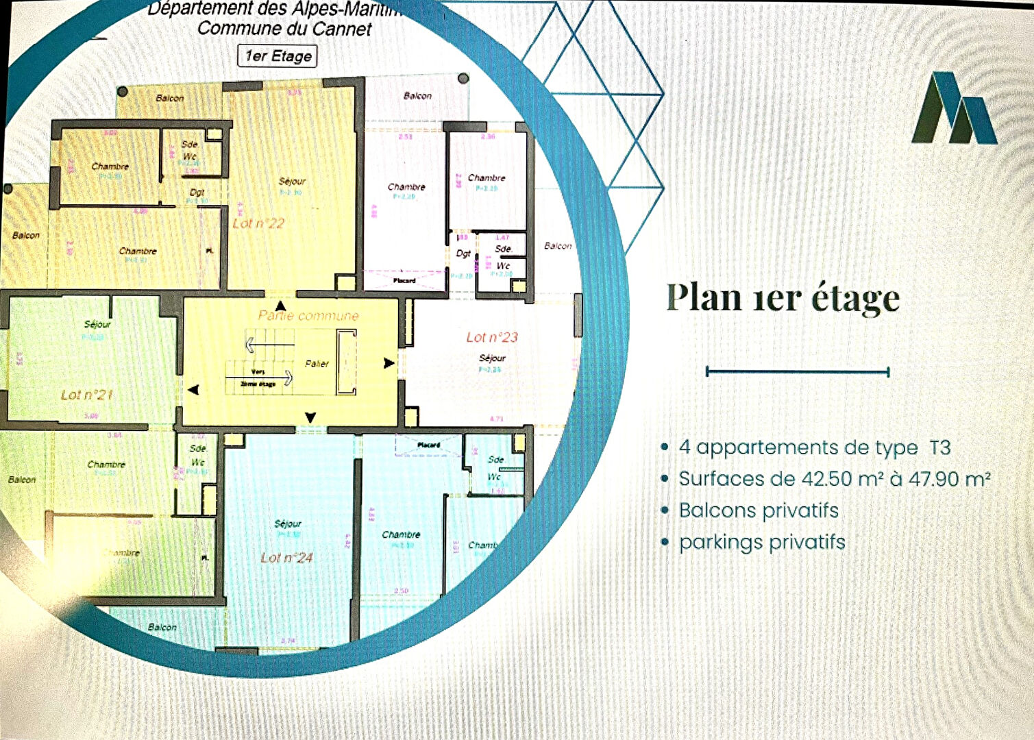 Situé au Cannet dans une impasse au calme, dans un petit immeuble en bon état d'entretien, neufs appartements allant du studio avec mezzanine au 3 pièces, tous dotés de balcons privatifs ou jardin et complétés par cave et parking.