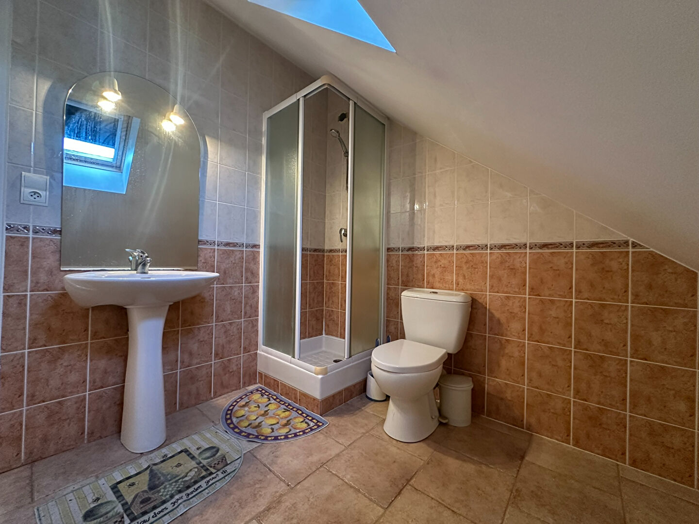 Au second étage de cet appartement le palier est actuellement utilisé en bureau. Deux chambres confortables avec une salle d'eau avec WC complètent ce niveau.