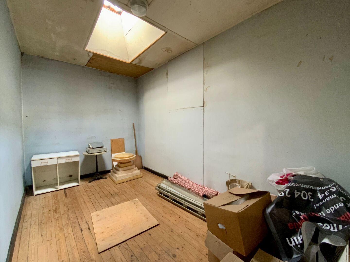 Rez-de-chaussée : Ancien local commercial avec grande vitrine, vaste espace de magasin, bureau et grand espace de travail.