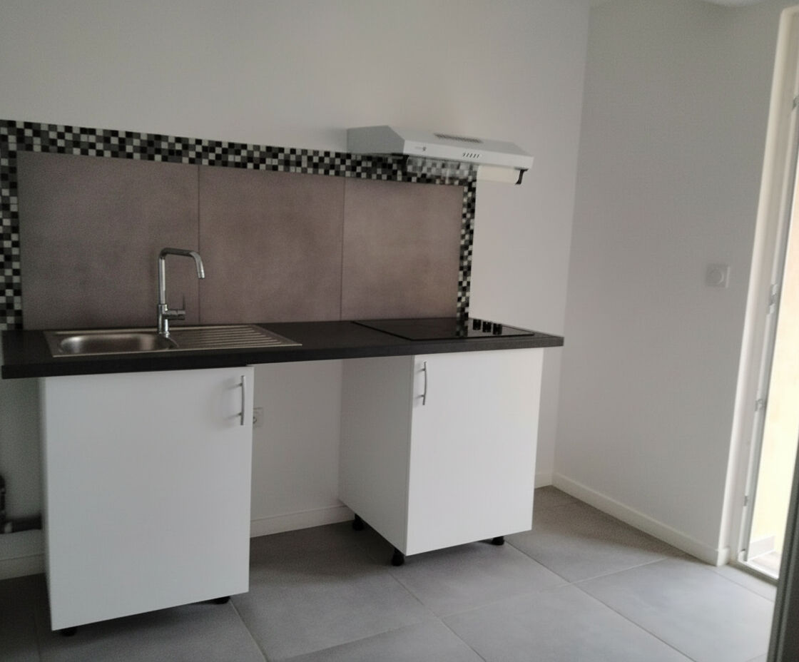 -1 appartement type f1 possibilité F2 au 1 étage comprenant cuisine aménagée équipée ouverte sur belle pièce de vie, un espace pouvant accueillir une chambre, salle d'eau avec WC et chauffe serviette.