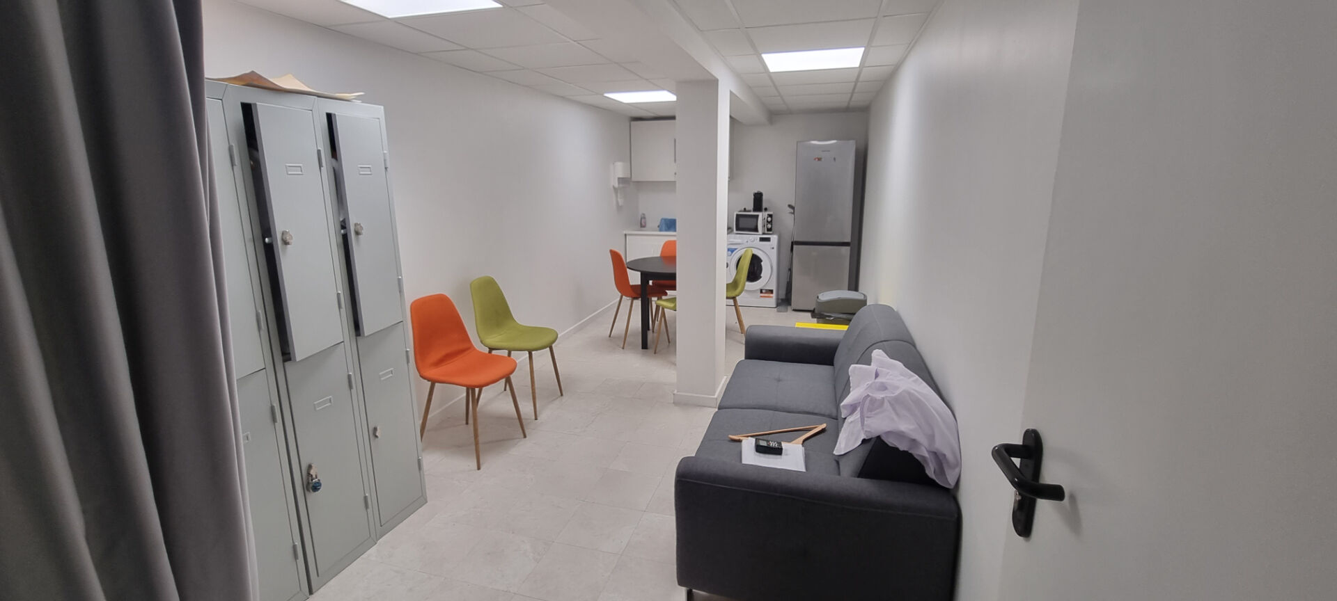 Cave aménagée et isolée, offrant un espace de stockage ou d'archives complémentaire, salle de détente.