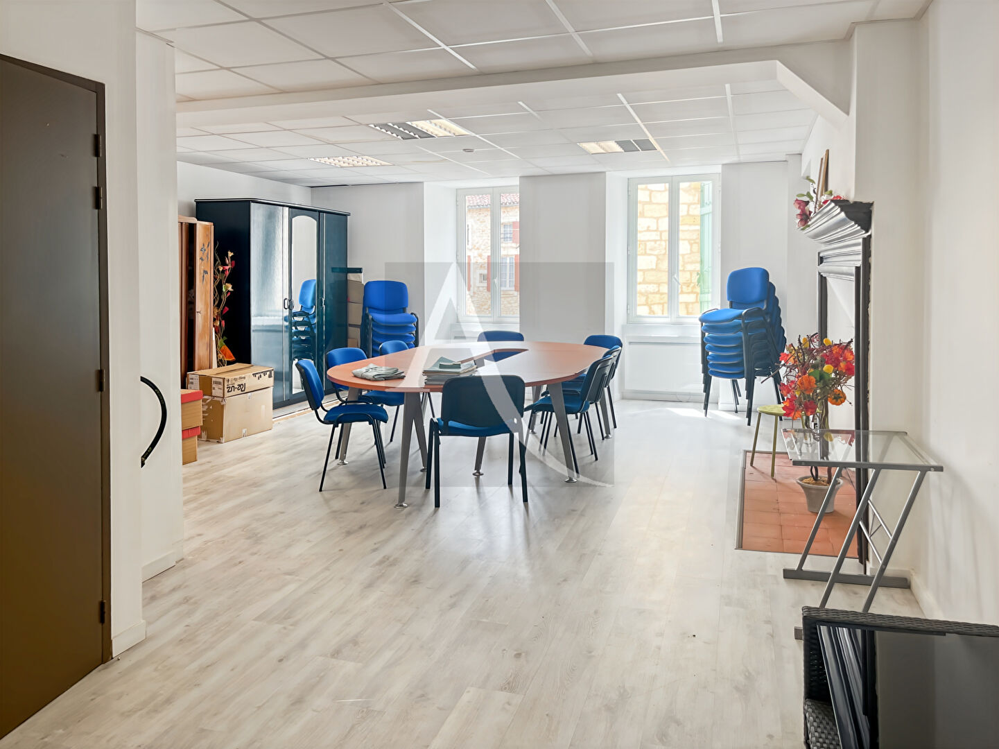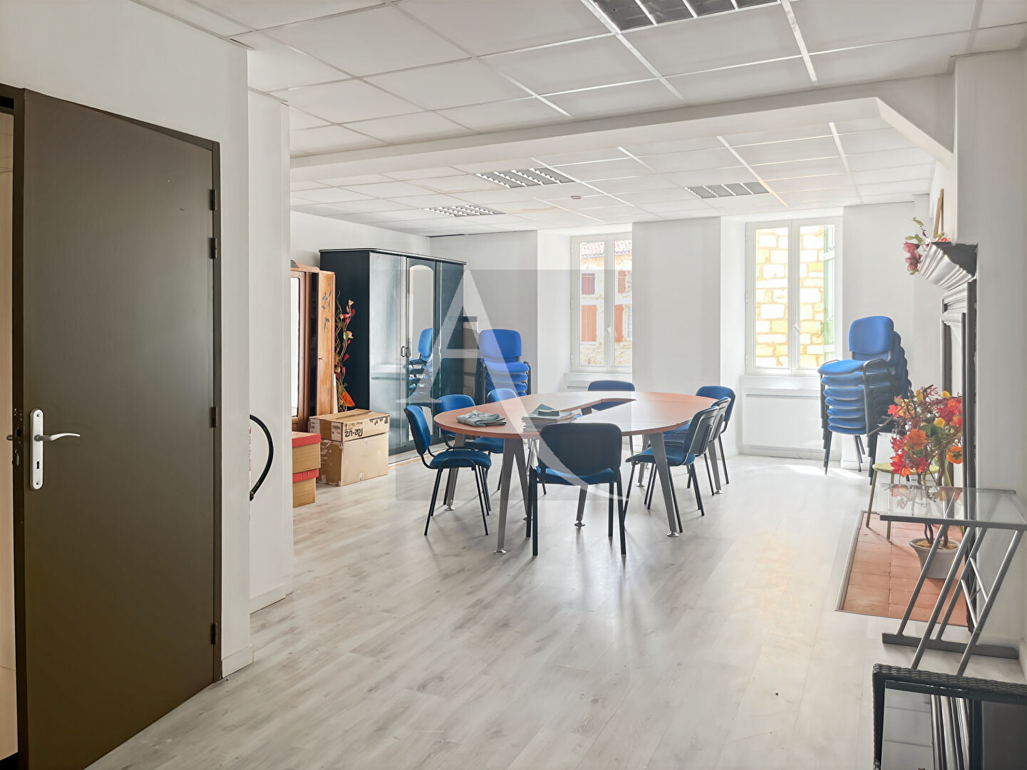 À l'étage, vous trouverez une grande salle de réunion, lumineuse et fonctionnelle.
