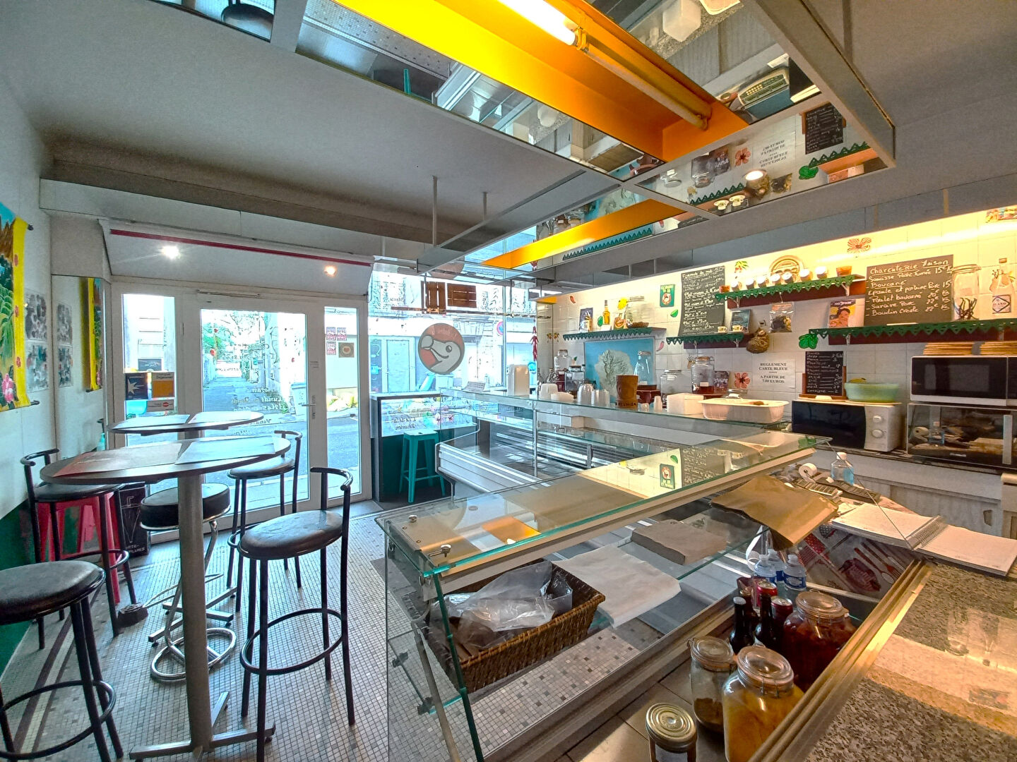 La partie professionnelle (119m² au sol) comprend une boutique, une cuisine et une chambre froide au rez-de-chaussée, ainsi qu'un laboratoire et de nombreuses réserves au rez-de-jardin.
