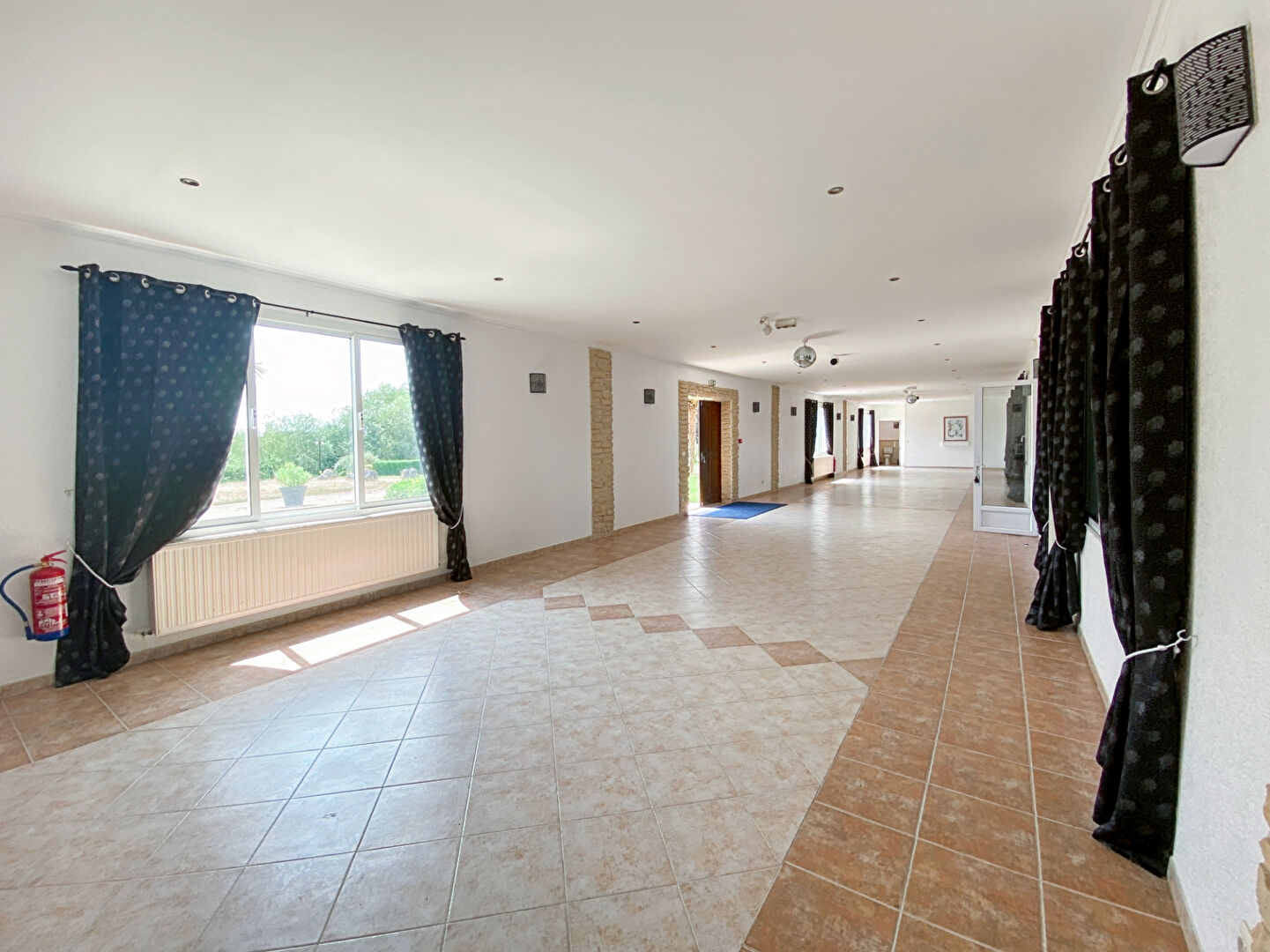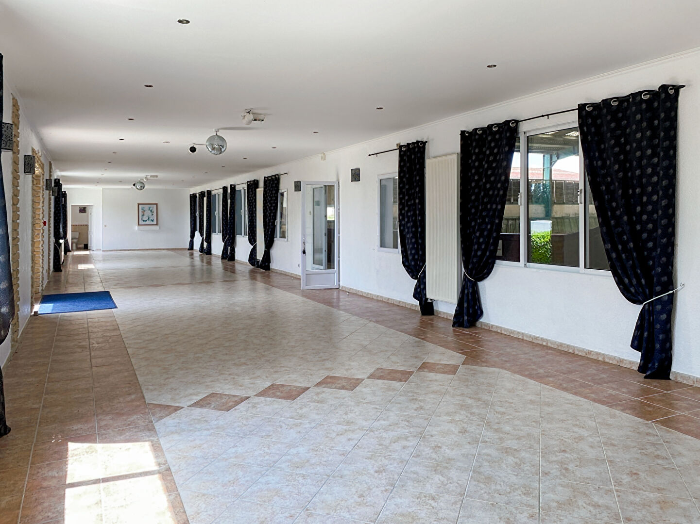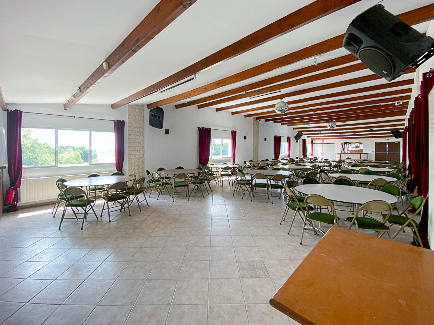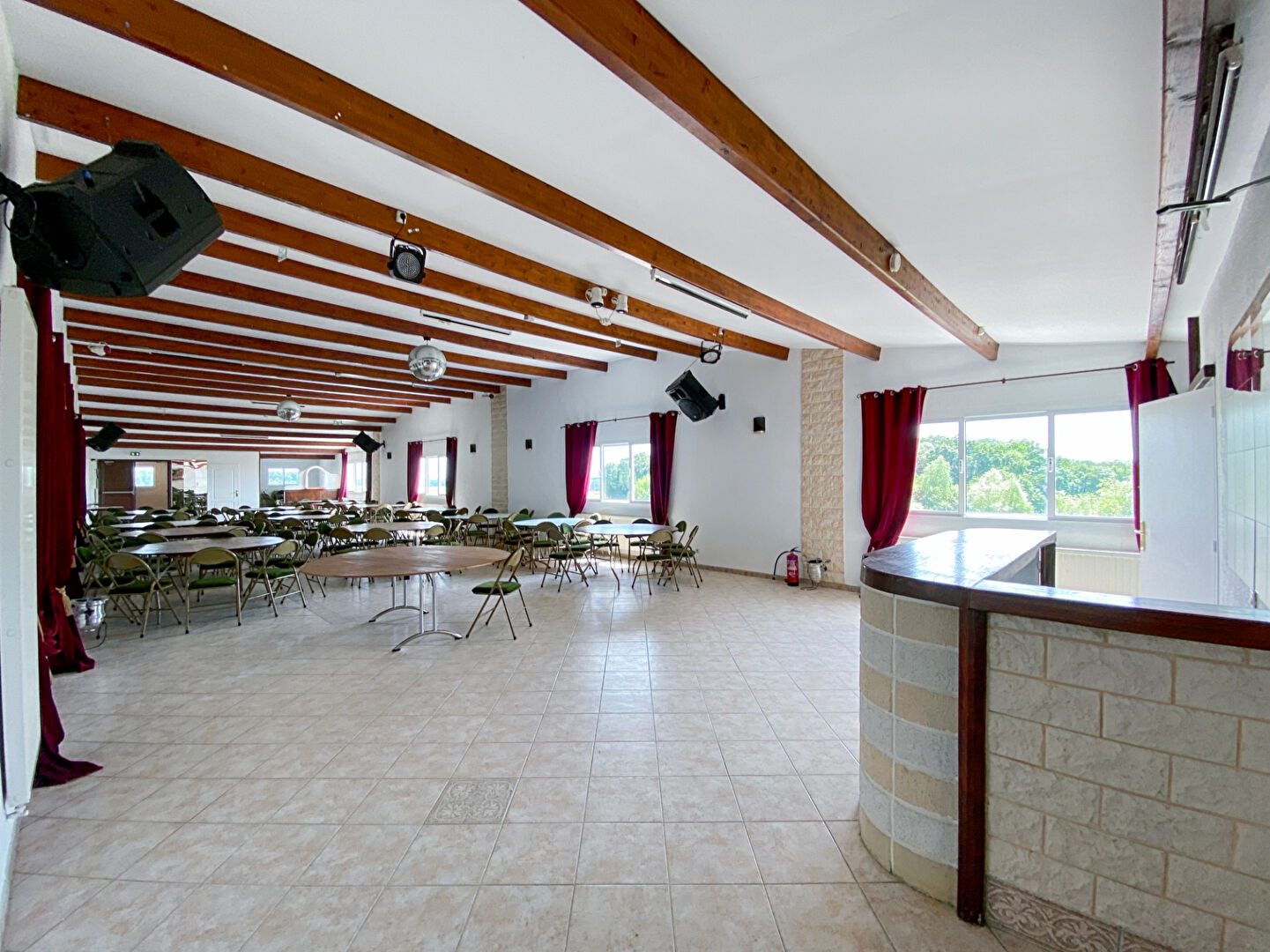 Composé d'une salle de 130m² en rdc avec sanitaires (handicapé) et d'une seconde salle de 160m² avec office traiteur, espace dj, vestiaire et autres locaux techniques.