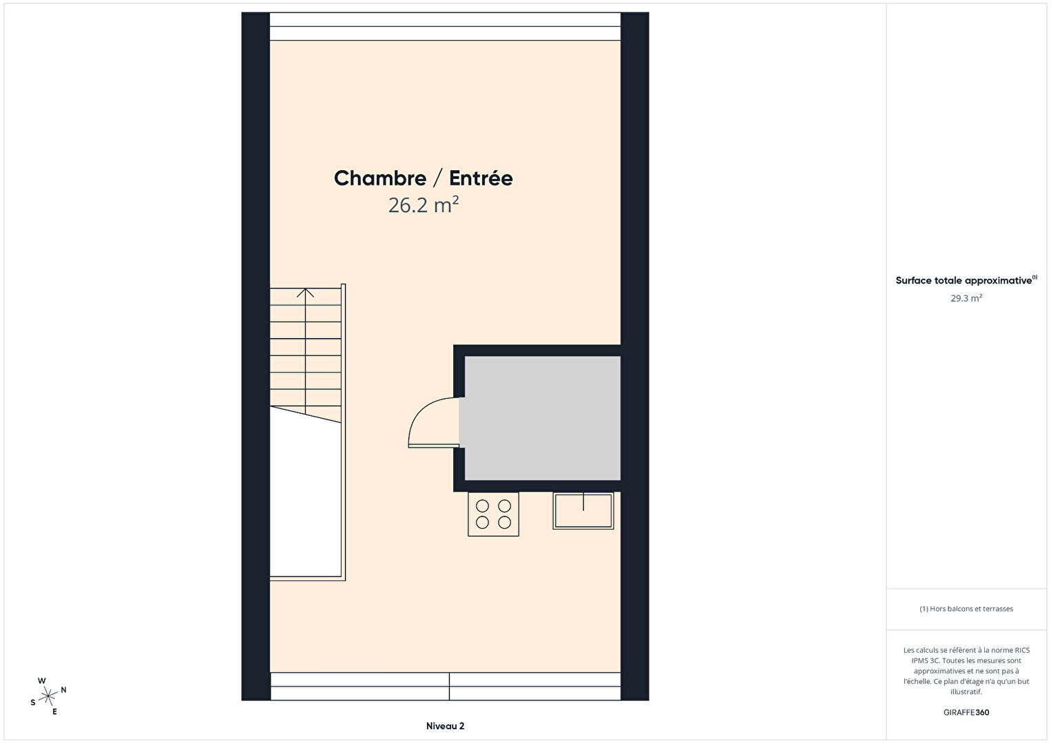 Sous les combles un studio avec cuisine séparée idéal pour une personne voulant être indépendant