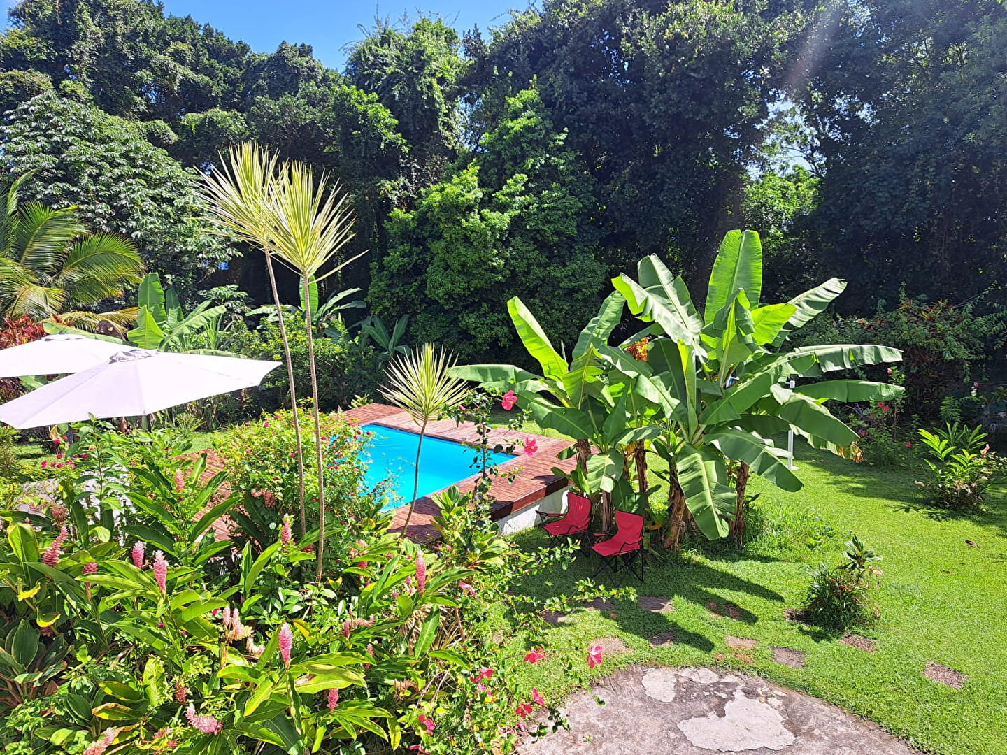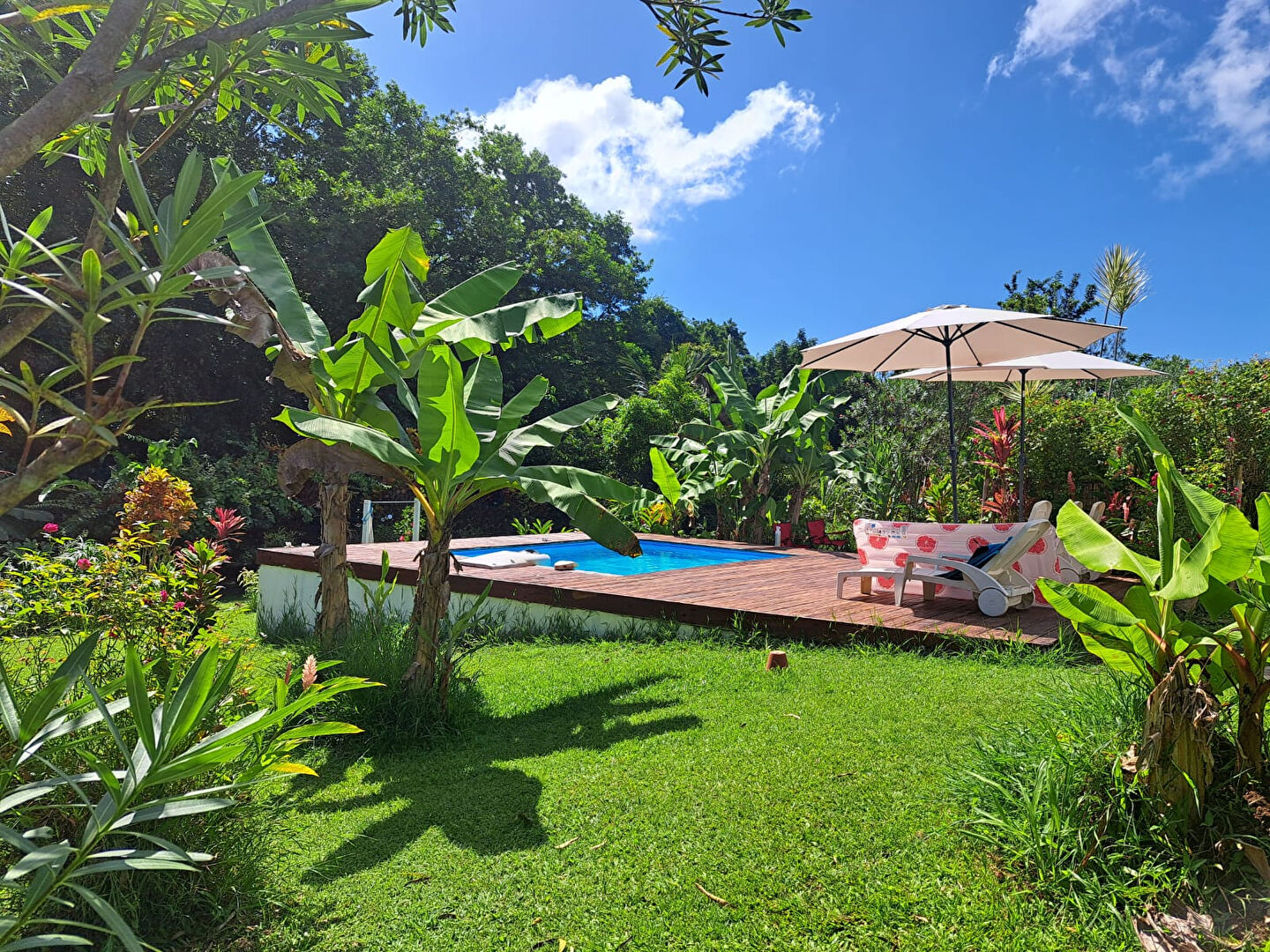 Erigée sur une parcelle plate de plus de 2400 m² au coeur d'un aménagement paysager composé de jolies essences florales et d'arbres fruitiers, cette habitation propose en rez-de-jardin une immense pièce de vie comportant une cuisine aménagée équipée avec ilot central , un master salon - salle à manger, deux chambres aux allures de suite ( 14 et 21 m² !), une grande salle de bains, buanderie et toilettes indépendantes, sa grande terrasse et un appartement de type 3 avec son espace extérieur pour s'y restaurer et se détendre.