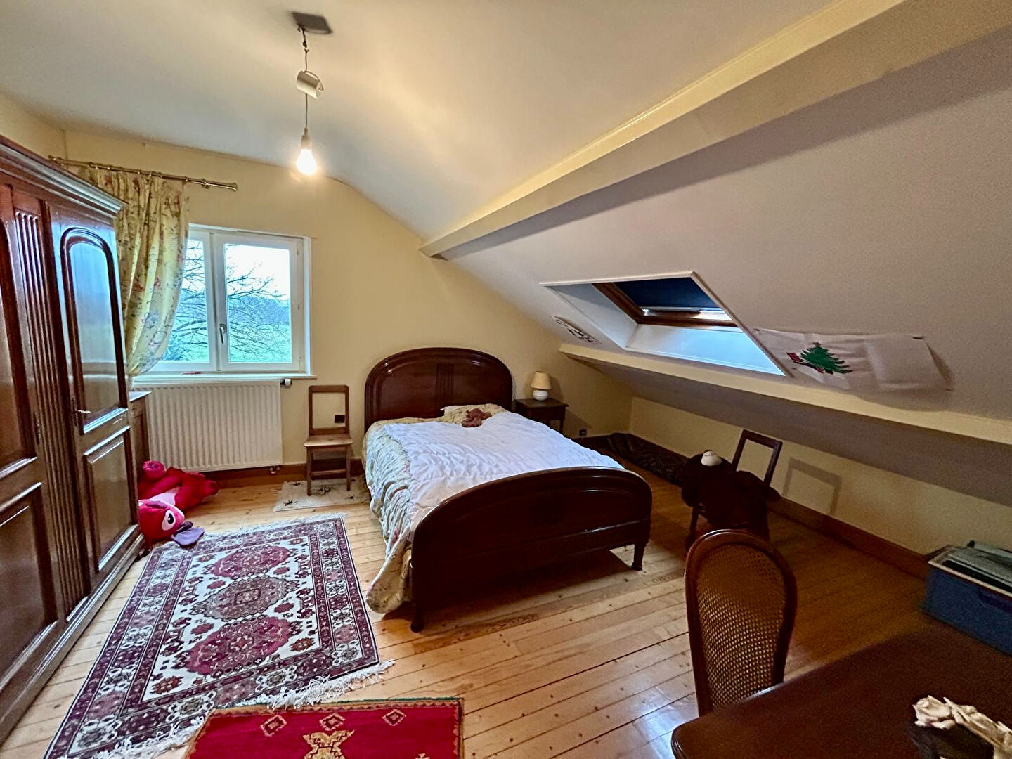 Côté confort, vous y trouverez un chauffage central ainsi qu'un poêle alsacien. Un sous-sol complet avec double porte de garage complète ce bien.