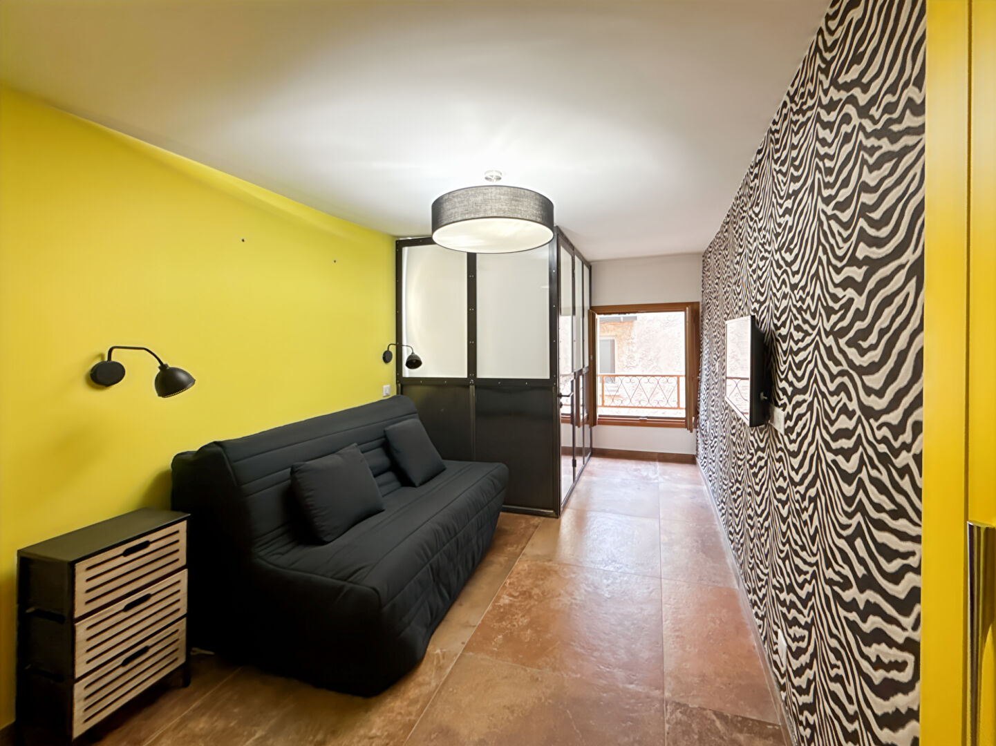 - Une pièce avec couchage et velux, ouvert sur un solarium