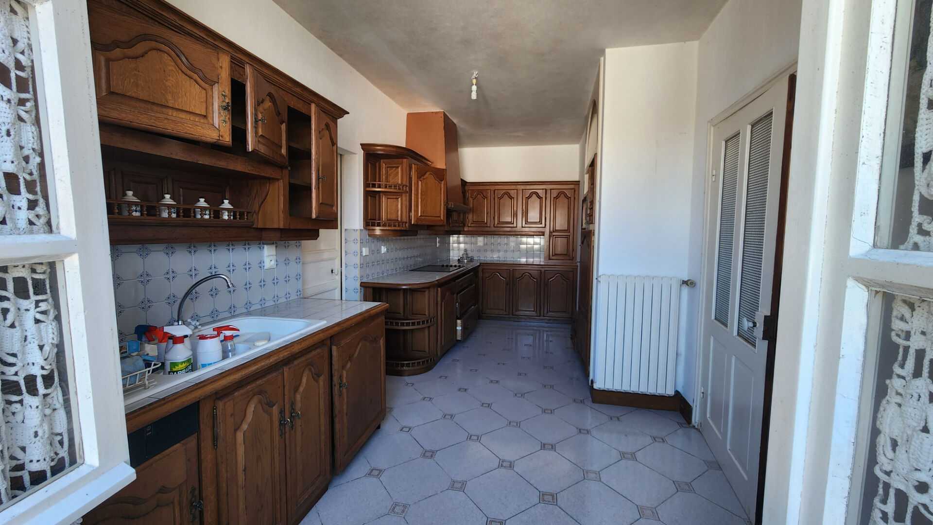 Au fond du couloir, vous découvrirez une salle de bain ainsi qu'un accès vers un espace comprenant une grande salle à manger, une cuisine et une arrière-cuisine, pour une superficie d'environ 41,55 m². Un WC indépendant complète ce niveau.