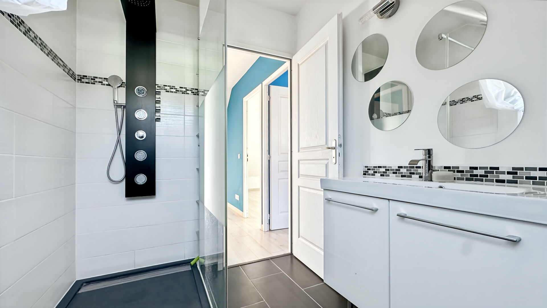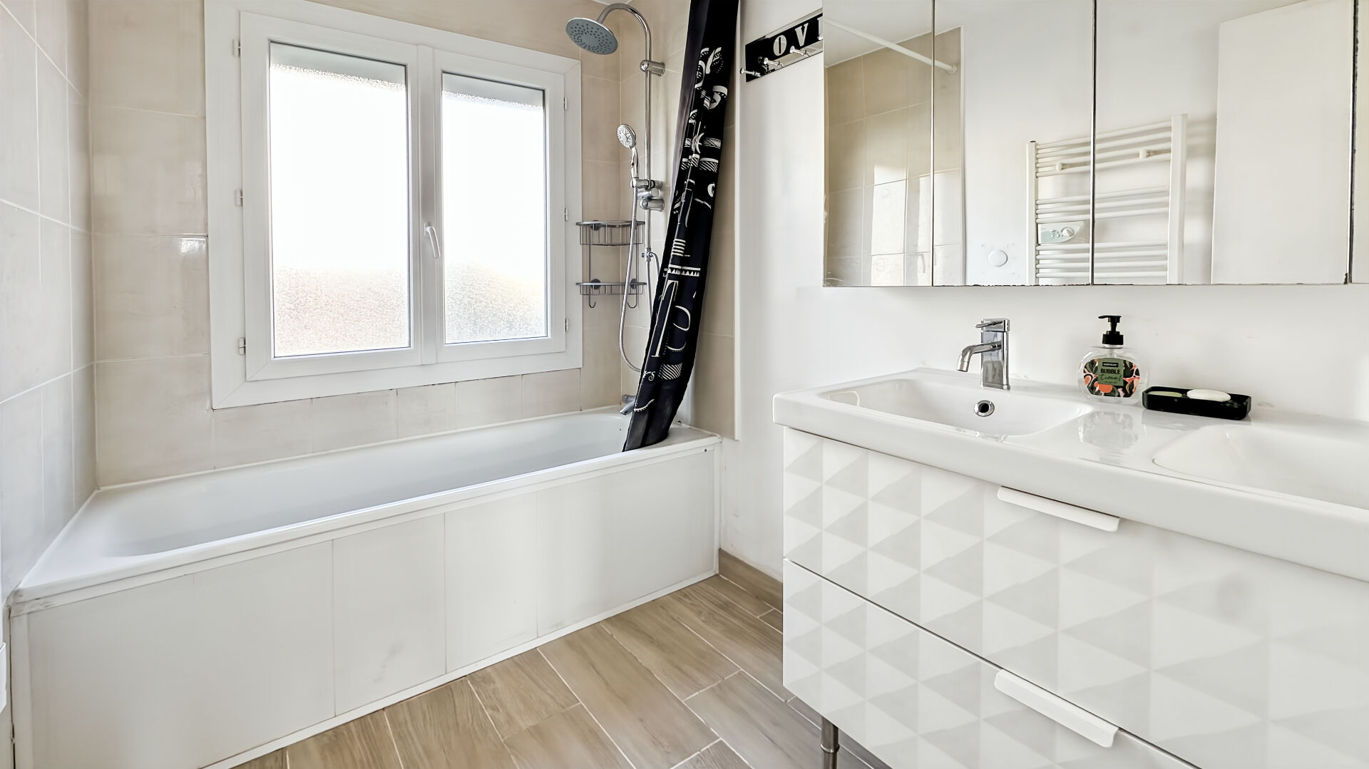 Entrez sur une belle pièce de vie et sa cuisine ouverte et profitez de sa vie de plein pied : une salle de bains et 2 chambres complètent le rez-de-chaussée !