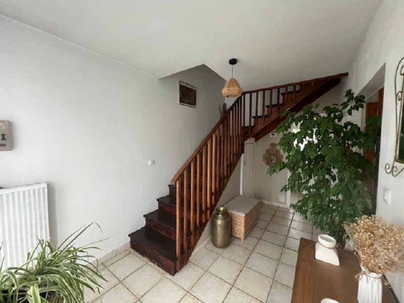 A l'intérieur, la maison de 92 M2 de surface habitable se compose en rez de chaussée d'une belle entrée, une pièce de vie, une cuisine aménagée et équipée et d'un toilette. A l'étage se trouve un palier desservant 3 chambres, une salle de bains et un toilette.