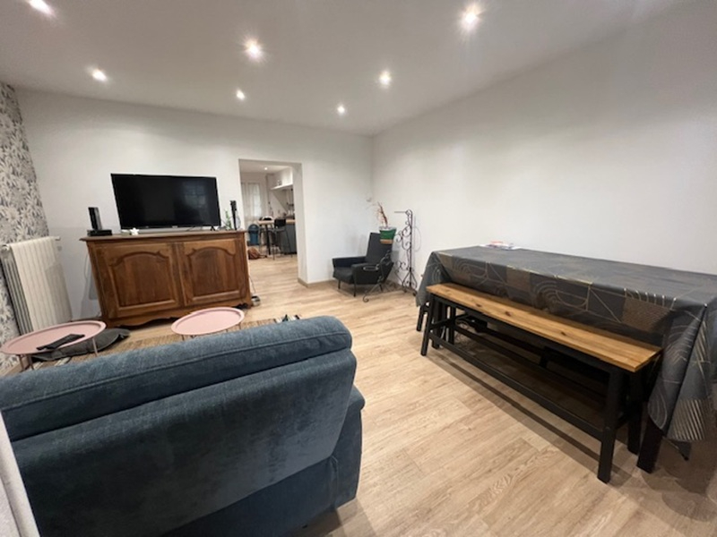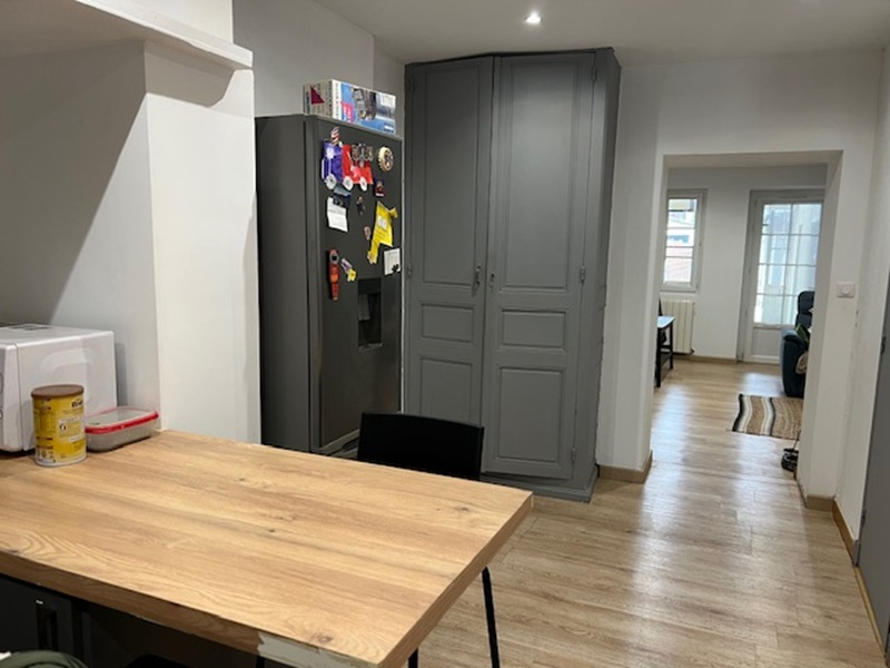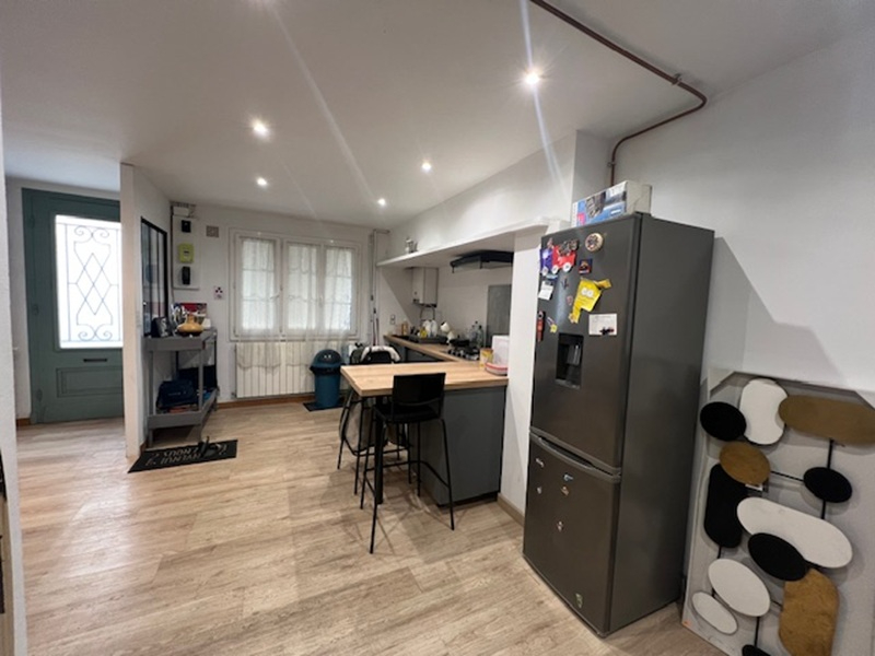 Maison de ville rénovée offrant de belles prestations avec en rez de chaussée : une entrée, une cuisinée équipée et aménagée, une salle d'eau avec toiilette, un salon,, une véranda et une buanderie. L'étage est composé d'un palier désservant 3 chambres.