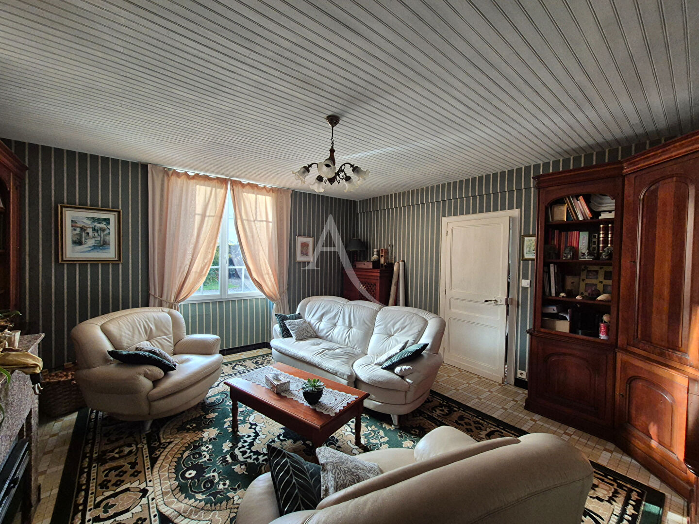 Dès l'entrée le ton est donné, une vaste pièce de réception mène à une salle à manger raffinée d'environ 23 m² sublimée par un insert à bois idéale pour les réceptions conviviales. Le salon lumineux d'environ 22 m² également doté d'un insert offre un espace chaleureux propice à la détente.