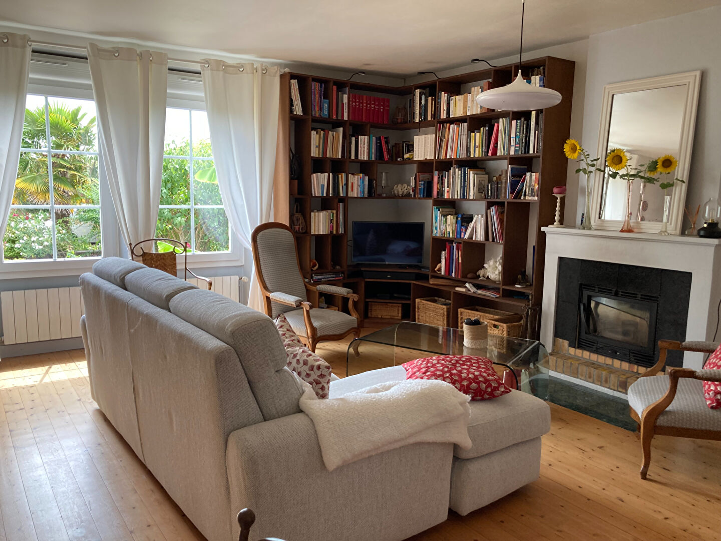 Dans un cadre verdoyant, maison avec beaux volumes comprenant une cuisine aménagée, un salon séjour avec cheminée, un boudoir, un bureau, 3 chambres.