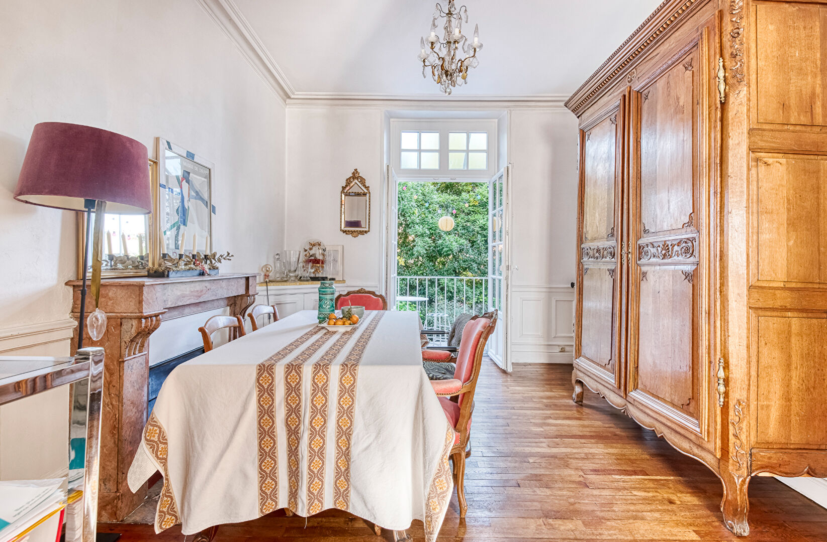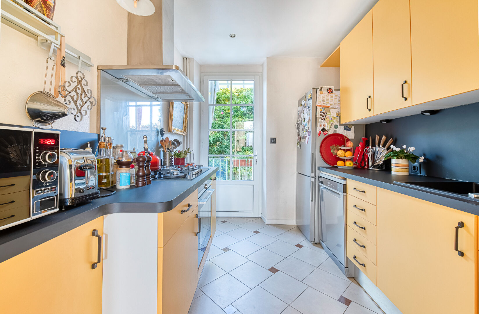 Au rez-de-chaussée : d'une entrée, d'un séjour-salon lumineux avec cheminées d'époque, ouvrant sur un balcon et un jardin, ainsi que d'une cuisine aménagée et équipée.