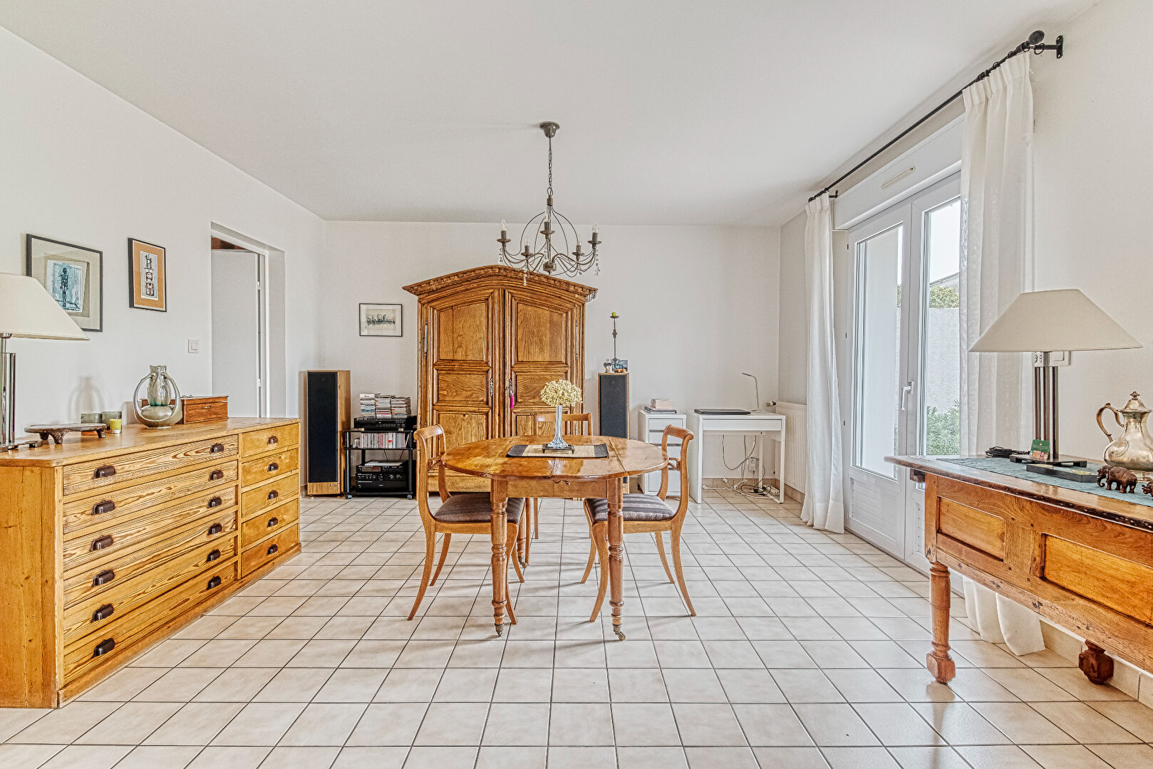 La cuisine indépendante, entièrement aménagée et équipée, s'ouvre sur le salon/séjour de plus de 27 m², exposé plein sud et doté d'une cheminée, idéale pour des moments conviviaux.