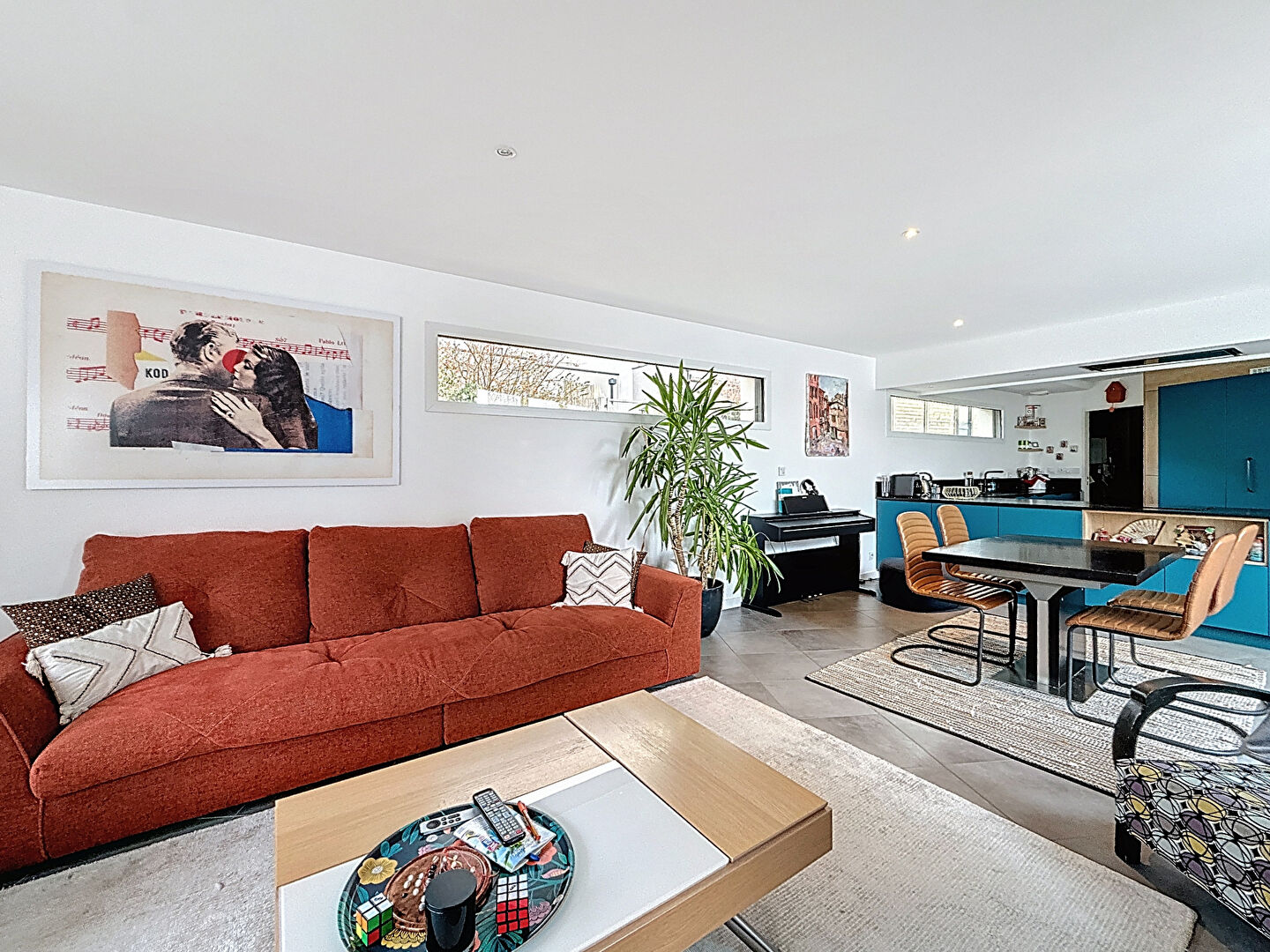 Au rez-de-chaussée, une belle pièce de vie d'environ 50 m² comprend un salon-séjour ouvert sur l'extérieur et une cuisine haut de gamme entièrement aménagée et équipée. Une buanderie, un local vélo avec accès sur rue, une suite parentale avec dressing et salle d'eau, ainsi que des WC séparés complètent ce niveau.