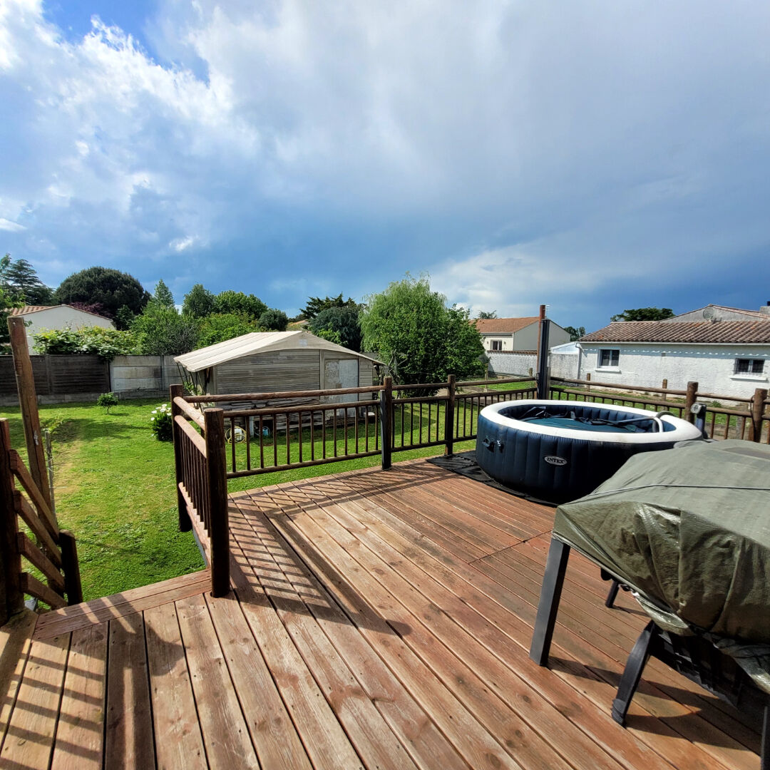A l'extérieur, vous trouverez une belle terrasse surélevée et de deux dépendances pouvant servir comme espace de stockage ou d'atelier.