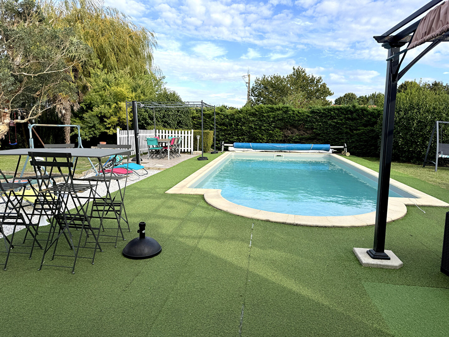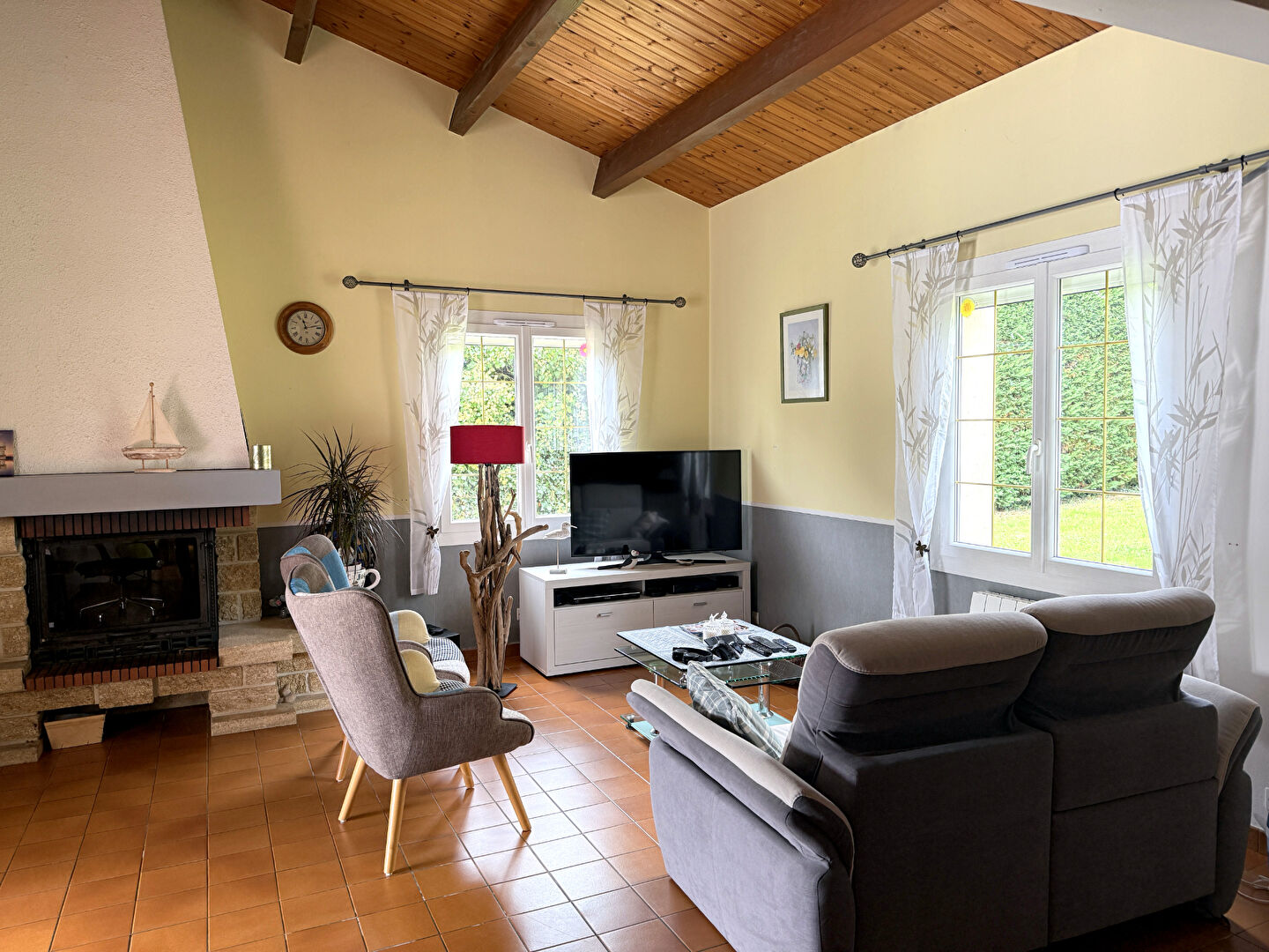 Située à Angles, maison de plain-pied comprenant : une entrée, une pièce de vie avec plafonds rampants et cheminée, une cuisine aménagée et équipée, trois chambres, une salle d'eau avec W.C., un deuxième W.C. séparée, une buanderie,, une véranda donnant sur une piscine creusée 9mx4,5m. Terrain de 1800 m² clôturé avec garage indépendant. Panneaux photovoltaïques, forage. Commerces à 10 minutes à pieds, plage de La Tranche sur Mer à 9km ! Classe énergie D . Estimation des coûts annuels : entre 2090 € et 2880 € par an Prix moyens des énergies indexés sur les années 2021, 2022, 2023. Plus d'informations : 0648443569 Corentin Papon (EI) N°RSAC 798880746 La Roche-sur-Yon. - Prix : 400900 euros - Réf. 1211.