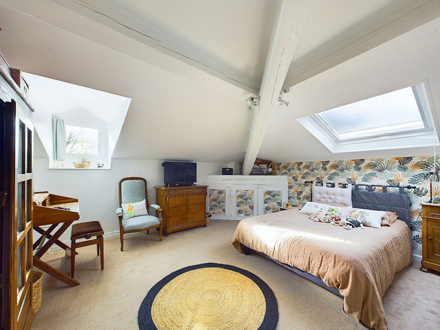 Le deuxième étage propose trois chambres supplémentaires et une salle d'eau, parfaites pour accueillir vos invités ou créer un espace familial indépendant.