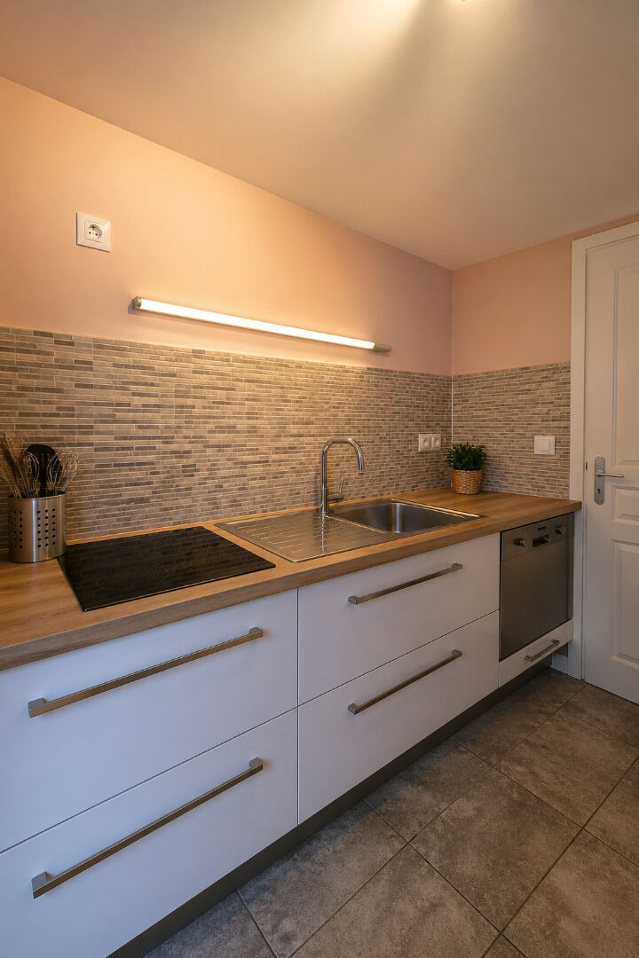 La maison dispose d'un vaste salon séjour de plus de 50m² et d'une cuisine ouverte. 4 chambres et 2 salles de bains. De nombreux rangements. L'appartement offre un séjour avec cuisine ouverte, de 2 chambres et d'une salle d'eau.