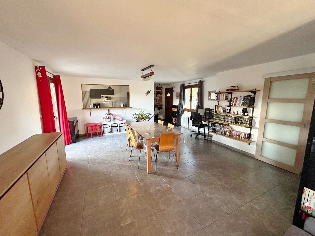 Entrez et découvrez un grand espace de vie de 40m² exposé sud avec poêle à bois , une cuisine semi-ouverte récente d'environ 12m², donnant accès à la terrasse de 26m² exposée sud.