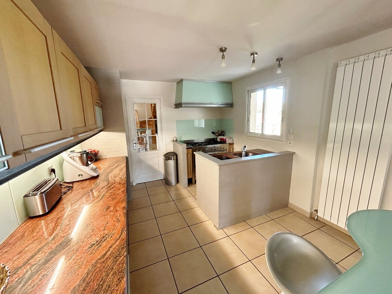 Venez poser vos meubles et vos valises et profitez de sa pièce à vivre traversante de plus de 58 m², avec poêle à bois au salon et cuisine ouverte équipée.
