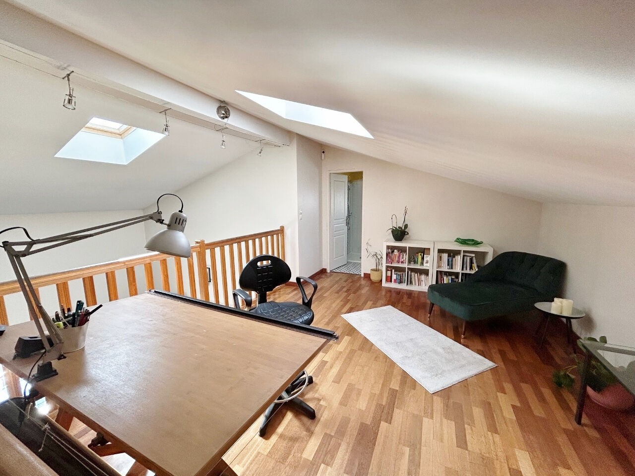 L'étage n'est pas en reste avec le bureau de 13 m² donnant sur une salle d'eau avec hammam, un salon/salle de jeux de plus de 30 m², 2 chambres supplémentaires et une salle de bains avec douche, baignoire et toilette.