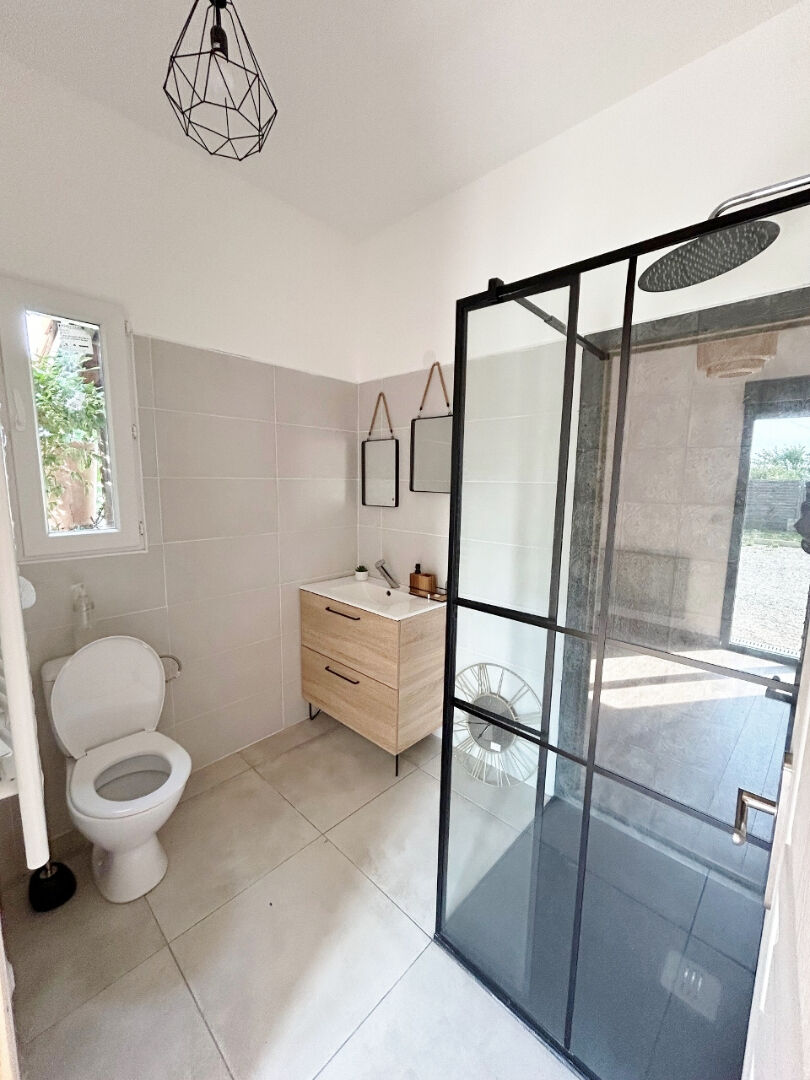 Coté nuit, un premier espace composé de 3 chambres, salle d'eau avec douche à l'italienne et toilettes séparés, puis un second espace avec une chambre indépendante et sa salle d'eau avec toilettes.