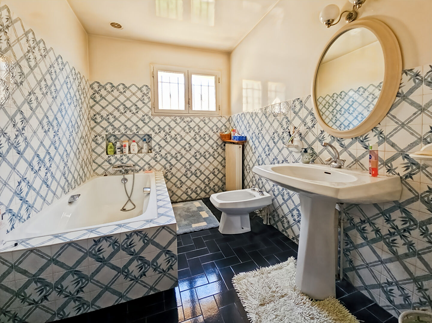 La discrétion dans un environnement privilégié: entourée par de hauts murs en pierres, vous pénétrez dans le parc paysagé de 2594m² , elle vous attend avec son exposition plein sud