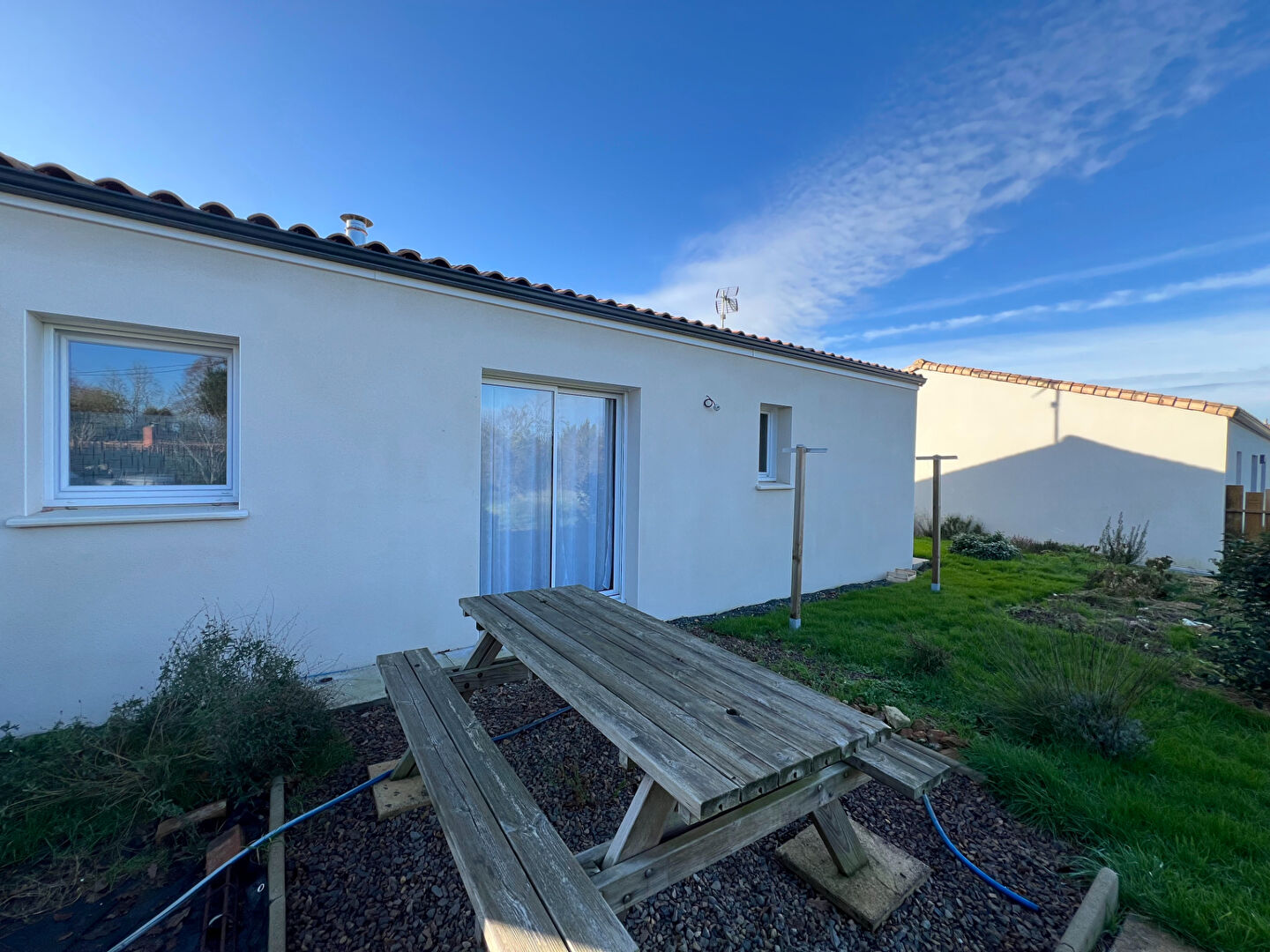 Emplacement idéal, au calme et à proximité des commodités, maison récente, sous garanties décennale/dommage ouvrage (construction 2024), proposant un salon/séjour lumineux avec cuisine équipée de bon standing, deux chambres, un garage et une terrasse. Jardin clos de 400m². Etat impeccable!