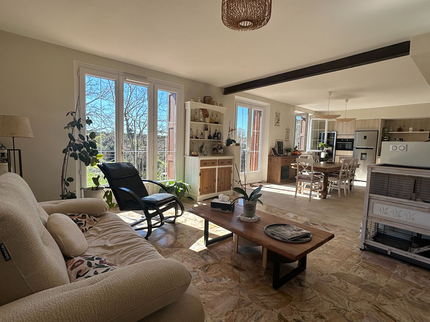 Construite en 1960 et entièrement rénovée avec soin, cette maison de plus de 200 m² offre aujourd'hui un cadre de vie confortable et fonctionnel, où chaque espace a été pensé avec goût.