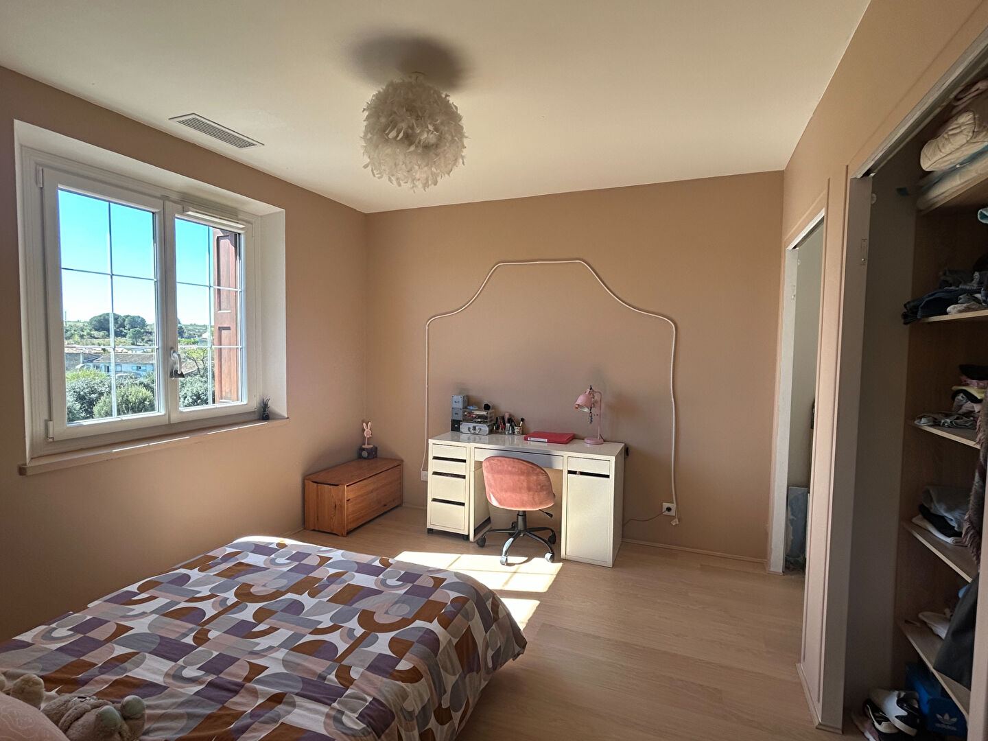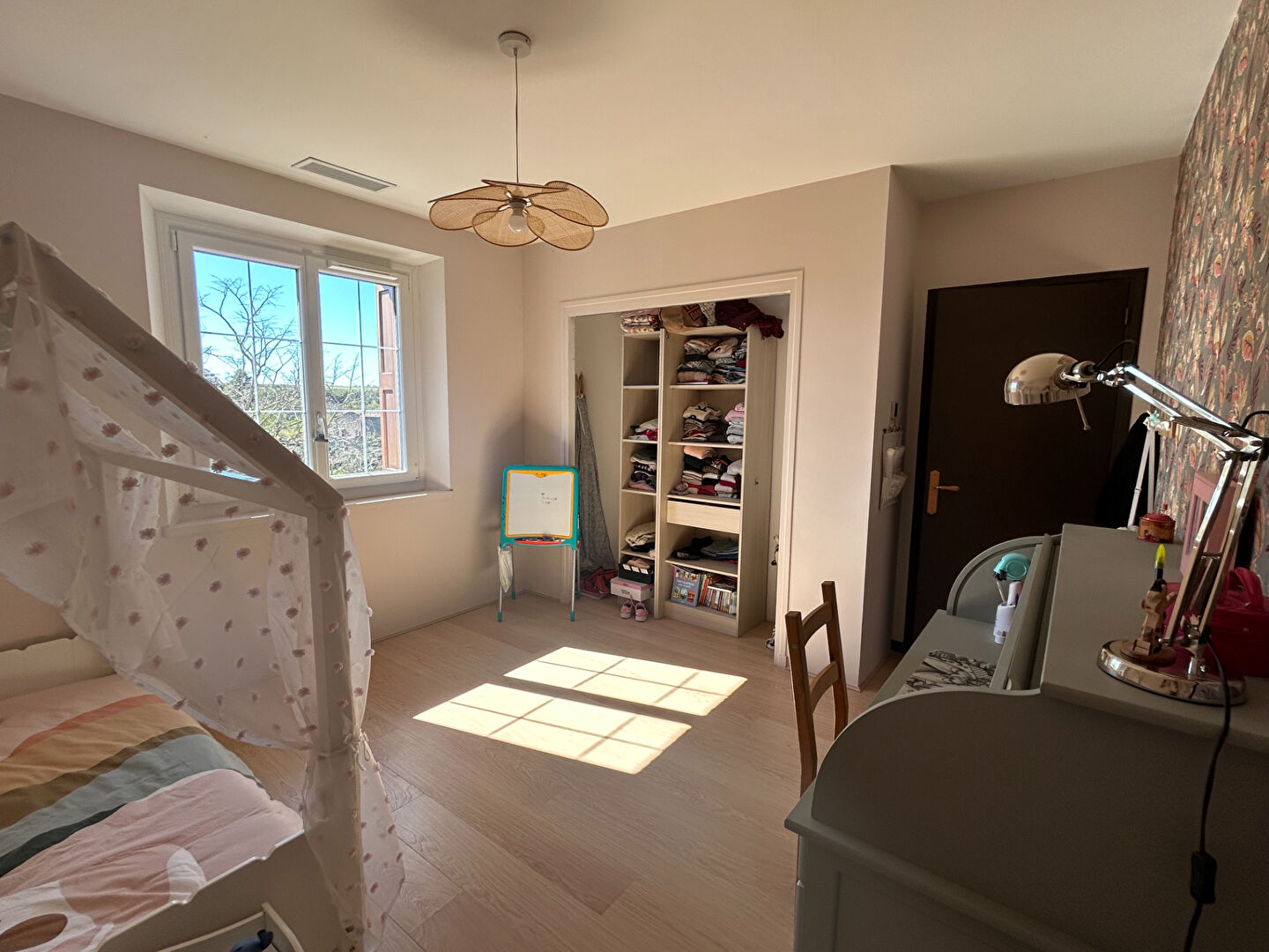 Le dernier étage propose quatre belles chambres, dont une suite parentale, offrant à chacun son espace dans une atmosphère calme et harmonieuse.