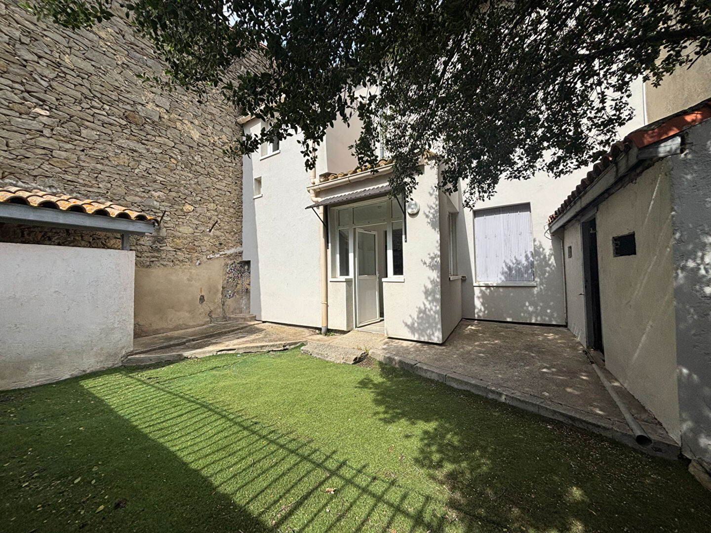 À seulement quelques minutes de Carcassonne et bénéficiant d'un accès facile, cette charmante maison saura séduire par son authenticité et son potentiel, dès l'arrivée le regard est attiré par sa jolie façade pleine de caractère qui donne le ton d'un bien chaleureux et accueillant, au rez-de-chaussée vous découvrez une pièce de vie traversante baignée de lumière naturelle offrant une agréable ouverture sur un extérieur particulièrement valorisant, véritable atout de cette maison, une grande cour exposée plein sud, sans vis-à-vis, un espace rare et privilégié qui invite à imaginer de beaux moments de convivialité, des soirées d'été entre amis ou des instants de détente autour d'un café en profitant pleinement du soleil, à l'étage deux chambres spacieuses permettent d'envisager un cadre de vie confortable, accompagnées d'une salle d'eau avec WC, un espace complémentaire vient parfaire ce niveau pouvant aisément être aménagé en bureau ou dressing tout en donnant accès aux combles, idéal pour optimiser encore davantage le potentiel du bien, à noter que la maison a bénéficié d'une isolation par l'extérieur, apportant un confort thermique appréciable, une opportunité idéale pour un premier achat ou un investissement locatif, alliant charme, fonctionnalité et un extérieur particulièrement séduisant qui fait toute la différence.